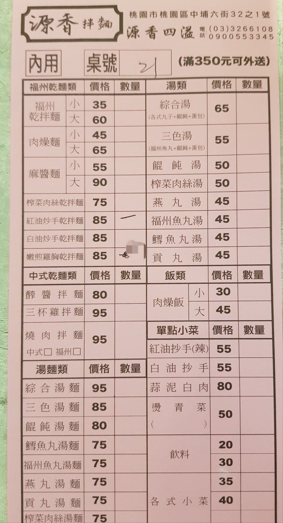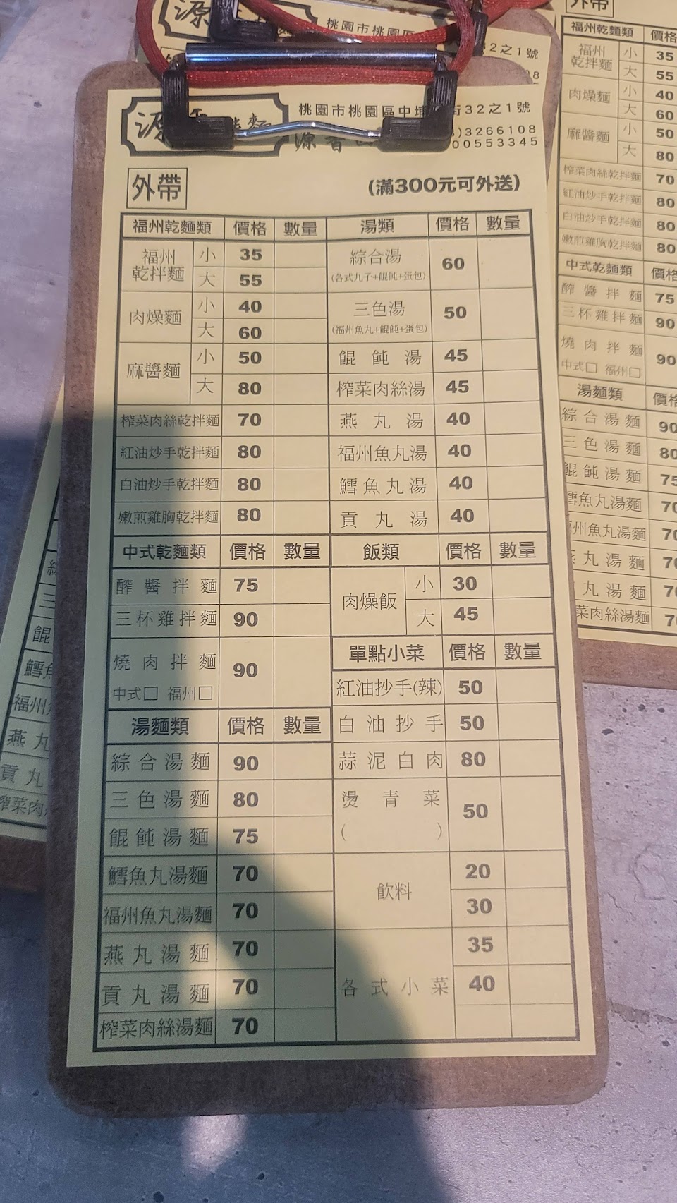 2024最新在地推薦餐廳的菜單_源香拌麵 (福州乾拌麵)/桃園麵店/餐廳/美食/小吃的菜單、圖片