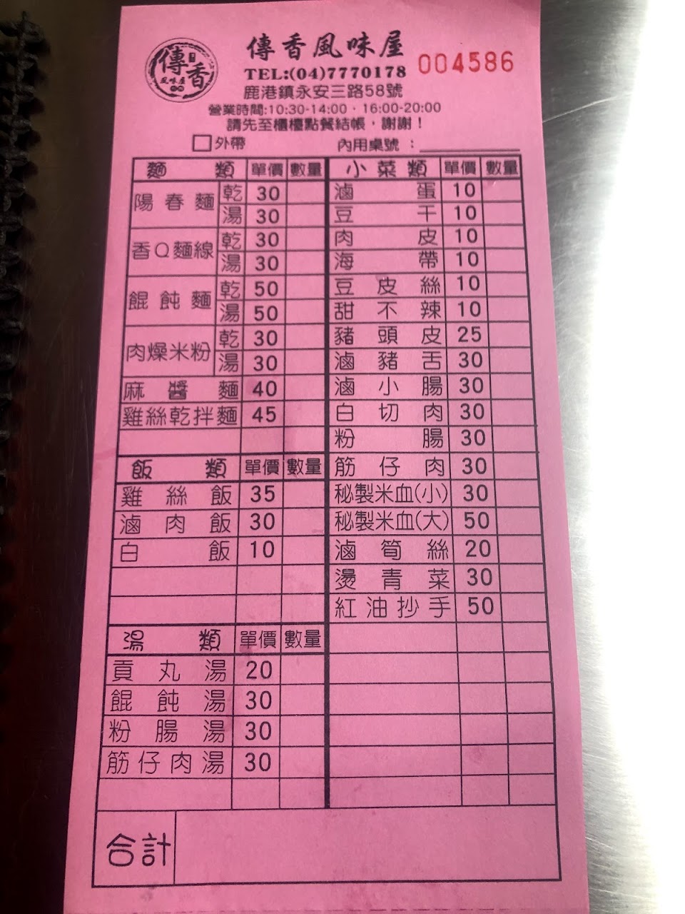 雞滷飯兩種混搭(雞肉絲+滷肉) 雞油香,肉燥偏瘦整體乾淨不油膩 秘製米血軟Q好吃,帶點中藥香氣 老闆老闆娘感覺用心 下次會想再去嘗試紅油抄手跟排骨系列 – ?雞滷飯(小)NT.50 • 秘製米血(小)NT.30 ?地址:彰化縣鹿港鎮永安三路58號 ☎️電話:04-7770178 ⏰營業時間:週一~週日11:00~13:30、16:00~19:30《週日公休》 服務 外帶 餐點類型 午餐 平均每人消費金額 $1-200 餐點:5 服務:5 氣氛:5 建議的餐點 米 血 雞滷飯 55