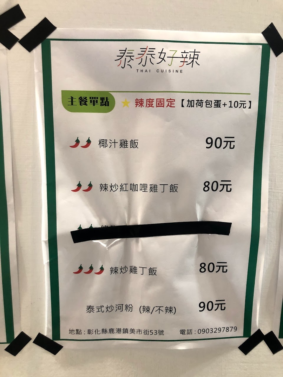 “套餐價已經沒有了” “套餐價已經沒有了” “套餐價已經沒有了” 所以打拋豬飯+奶茶就120,奶茶40,含量如圖….er………… 這還真是尬爆,cp值跟份量便宜…….喔好吧 說說打拋豬本身,畢竟不是美食評論家無法用太專業角度,以我網路魯宅吃起來-主觀感受-咦怎麼那麼像肉燥飯阿 印象中泰式料理店吃的打拋豬都很下飯,此次消費經驗覺得真很像肉燥飯 至於那個豆子,不是彌豆子吧,奇怪怎麼那麼硬 硬到跟肉燥(打拋豬啦)、白飯吃起來,有點難以下肚 牙齒不好的話可能有點辛苦 最後是等待時間啦,店內兩桌客人,還是等了一段 似乎是一直有外送跟外帶單吧 如果你是鹿港在地上班什麼的,考量一下用餐時間是否足夠 如果你是觀光客,那就…..找個在地小吃吧