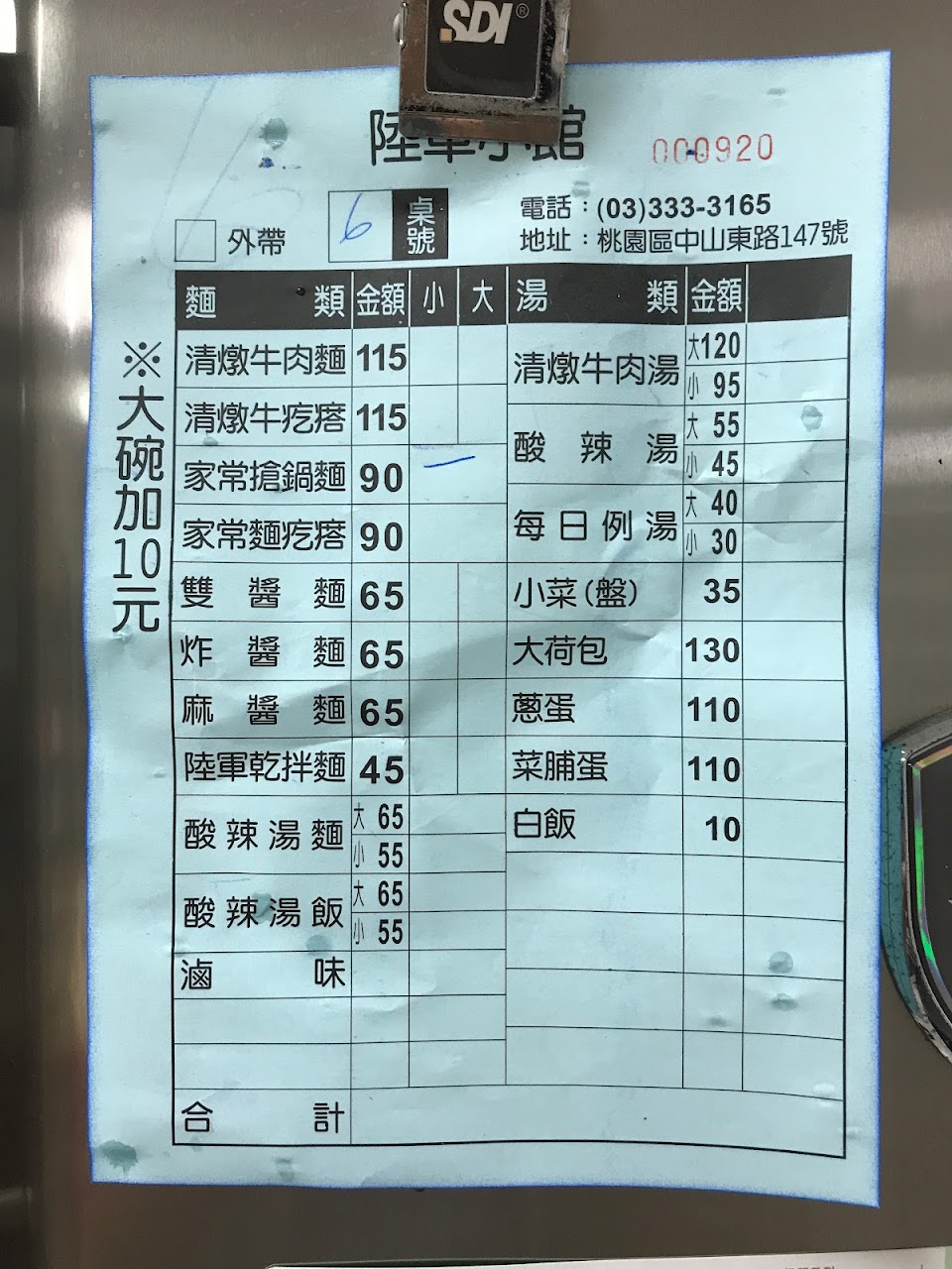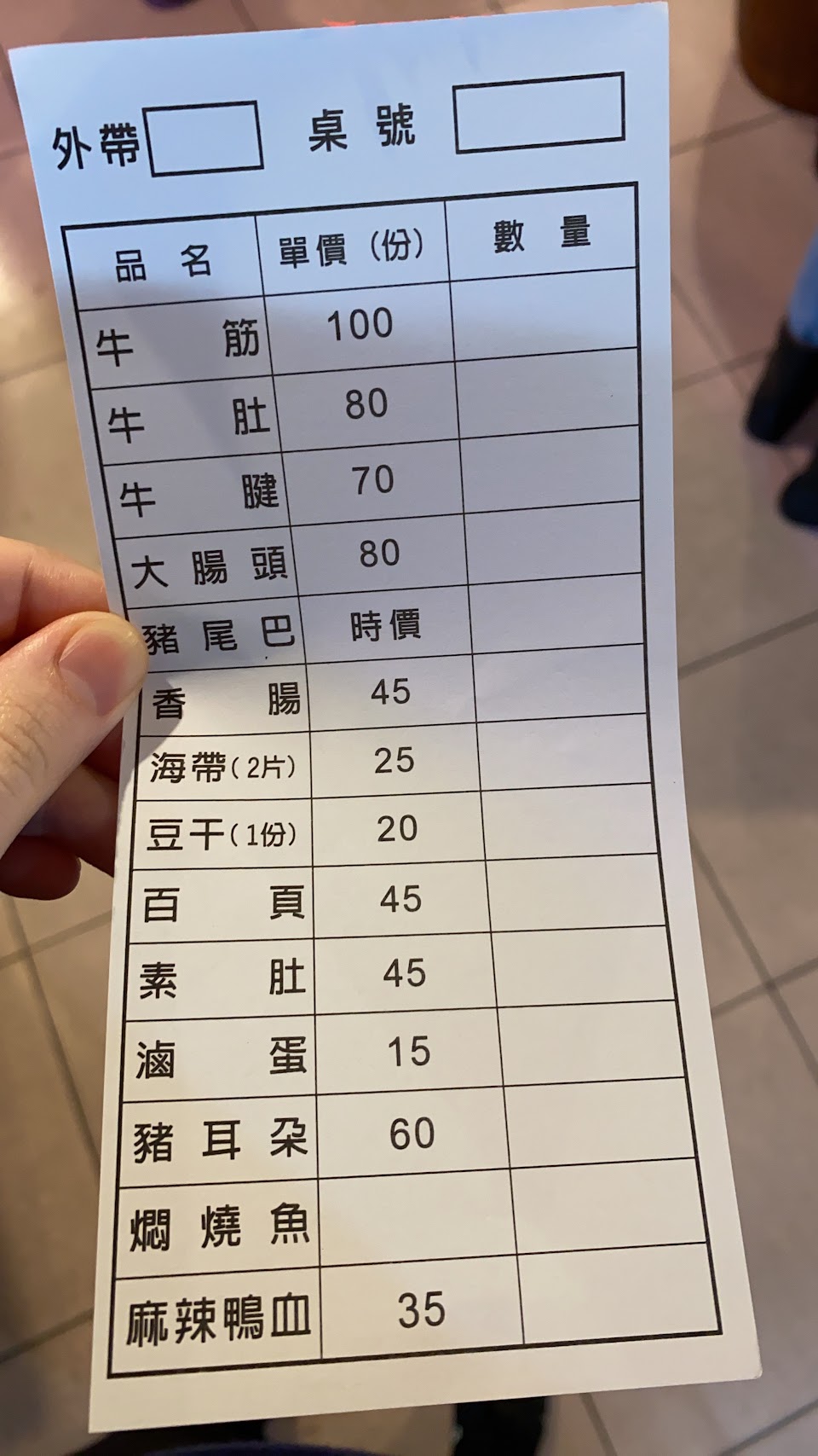 菜單分兩種:主菜跟滷味、小菜的話自行拿取