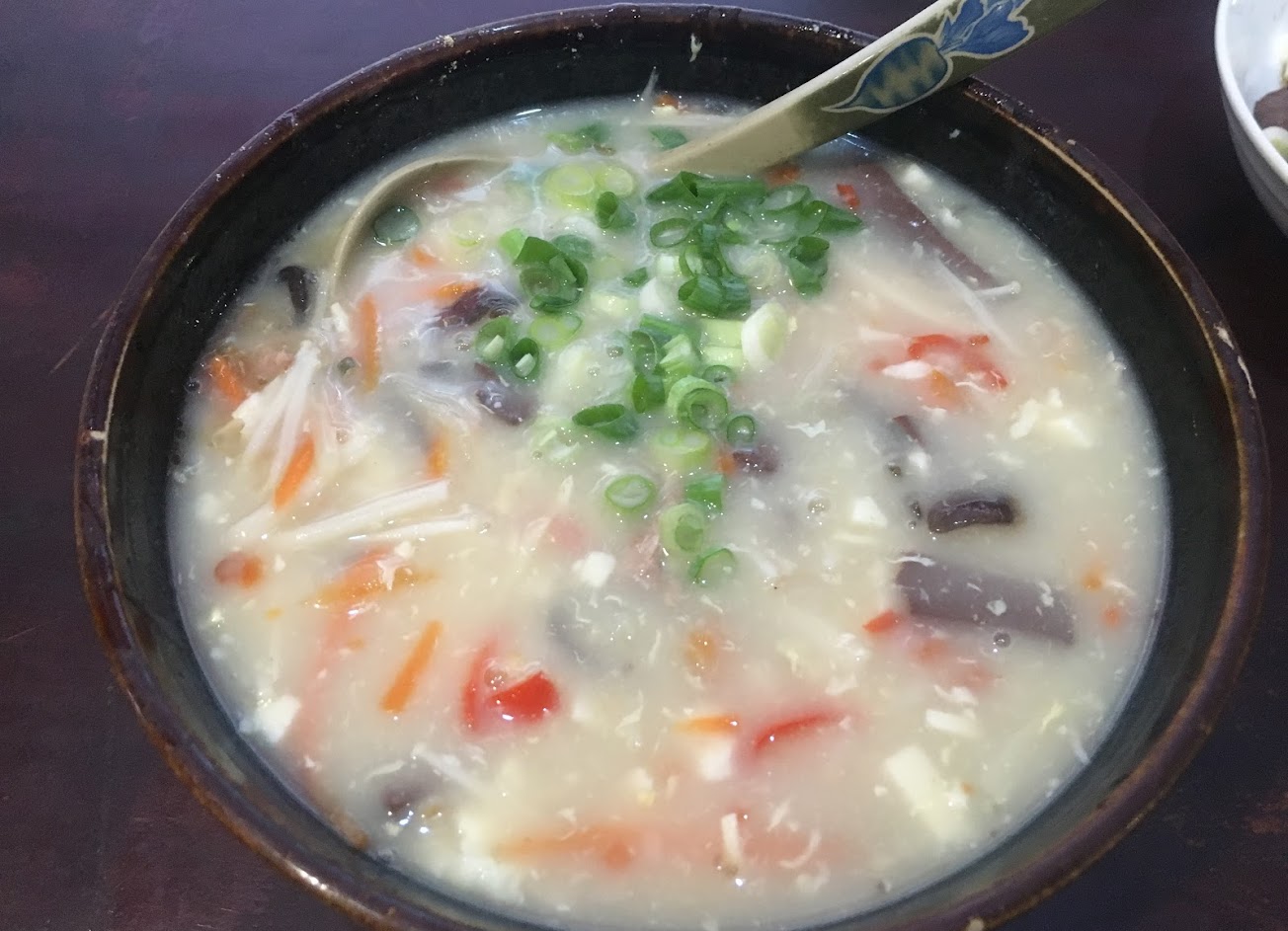 不同口味的酸辣湯(看似玉米濃湯)