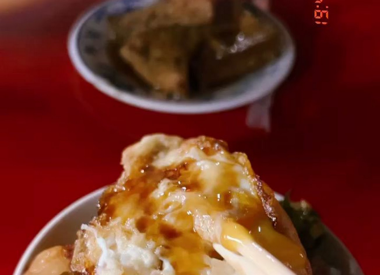 環境簡樸的路邊攤,供應米飯料理、滷肉和其他家常美食。