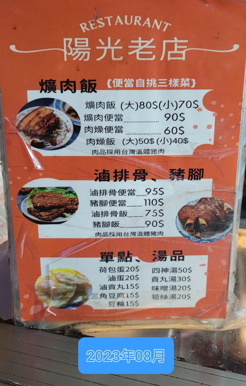 2024最新在地推薦餐廳的菜單_陽光老店 爌肉飯的菜單、圖片