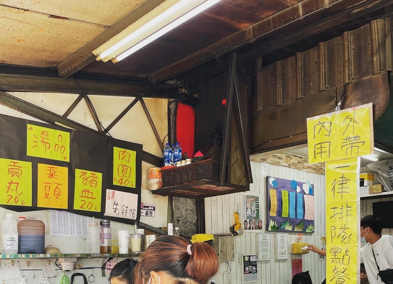 店家不論內用或外帶都需先排隊點單,禮拜天下午一點半多去還需排隊半小時,可以點完單去旁邊市場逛逛買麻糬跟高麗菜盒子,好吃推推! 肉圓用花生油炸的皮酥內有肉片跟竹筍,四十元的價位有料。