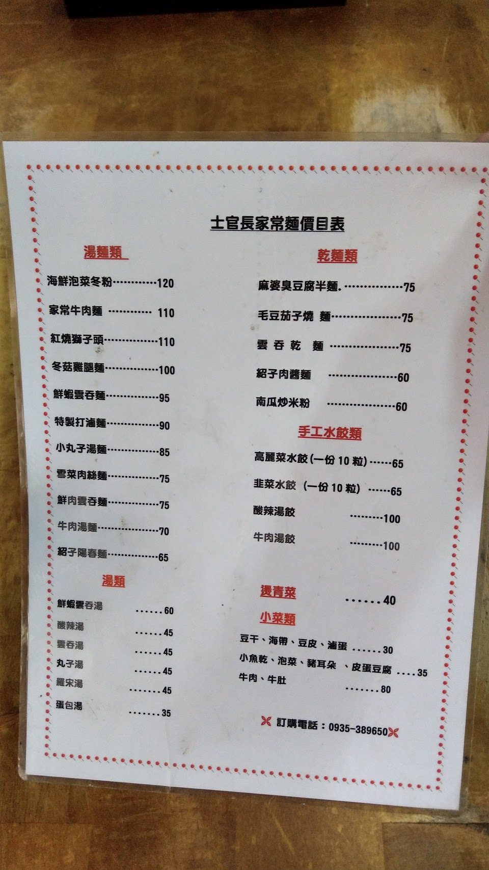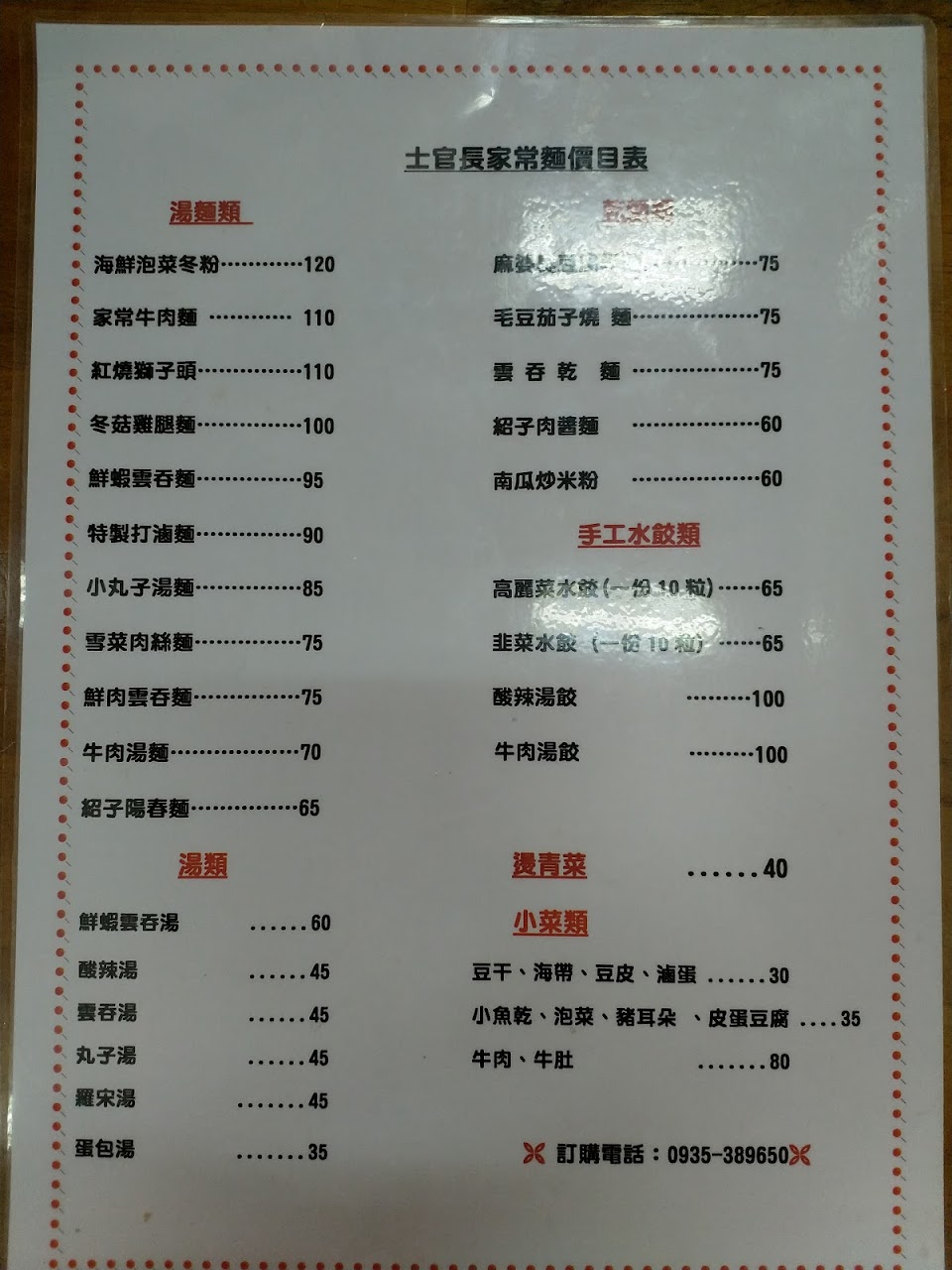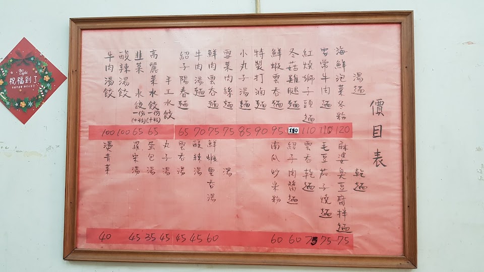 招牌上的菜單是老闆自書的
