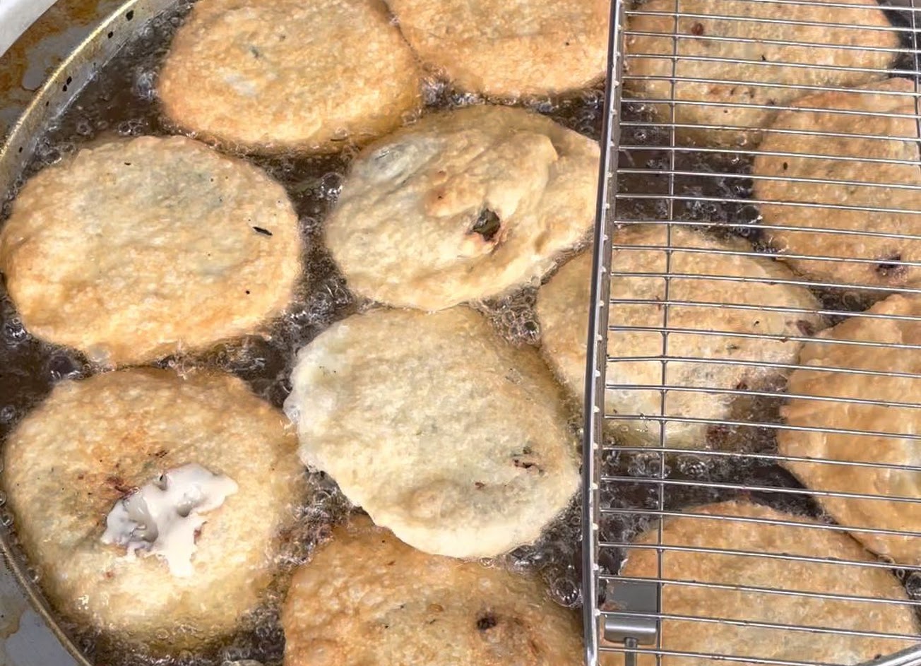 外皮酥脆有麵粉的甜味,高麗菜餡也很好吃。