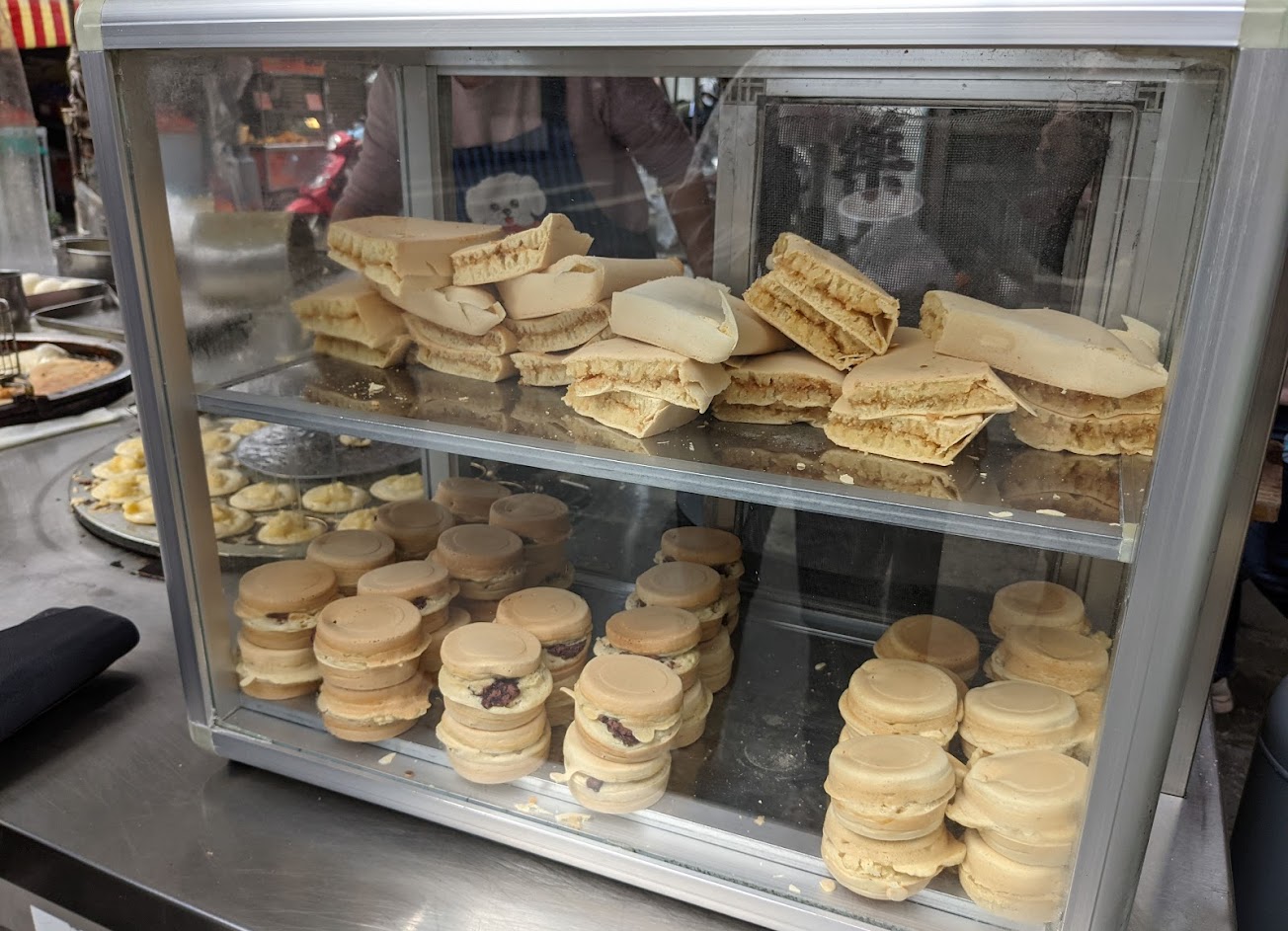 高麗菜煎餅雖然cp值高,但很油膩,偶爾吃吃就好;車輪餅、花生煎餅不推,軟爛口感,很普通。