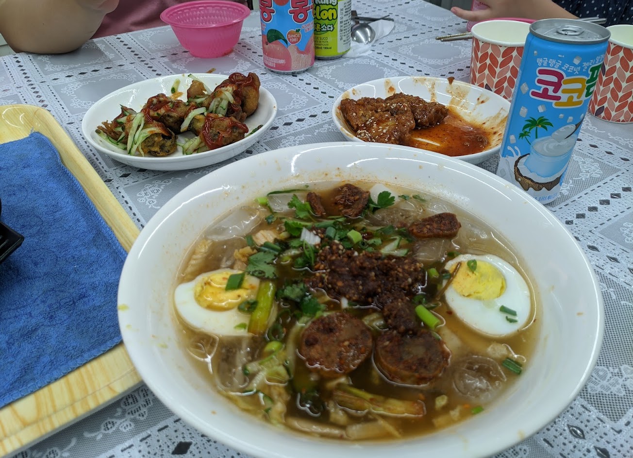 帶著滿心期待來到老闆是韓國人的韓國餐廳吃飯, 價格佛心平價,份量到位,白飯內用吃到飽,還有開發票,這很推薦 但味道讓人很失望? 大醬湯的顏色是咖啡色的?! 是被香菇染色了嗎? 湯頭喝很久,都跟印象中的大醬湯不一樣,光顏色就不對 血腸軟Q份量足,但旁邊的泡菜 發酵味很重,高麗菜還白菜泡菜是軟爛口感,沒有脆口沒有香味 以上都更讓我懷念在越南吃的韓國菜了 在越南每間韓國料理都是到地韓國人開的,大醬湯的顏色應該是黃的 裡面要有節瓜,連韓國烤肉餐廳附送的免費大醬湯都不是咖啡色的? 希望你們生意長長久久,但對不起,這裡我不會再去第二次也不會推薦朋友