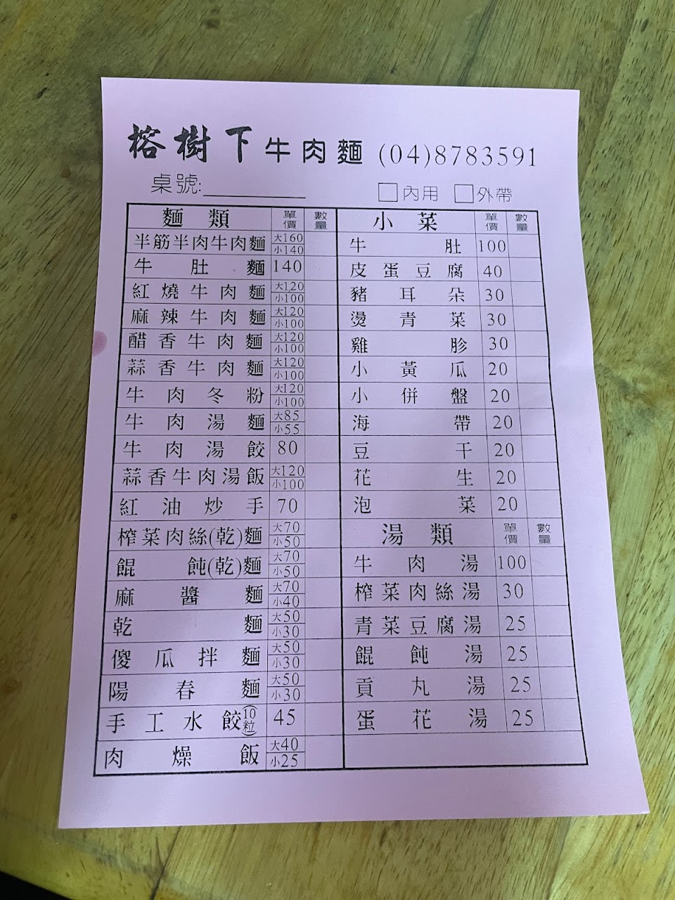 便宜是便宜但是老闆娘不看單子,我明明有填單點菜,卻都沒看只問我要幾碗而已,蒜香牛肉麵可是他只給我紅燒小菜也沒做,最後我只付錢拿了兩碗麵走。