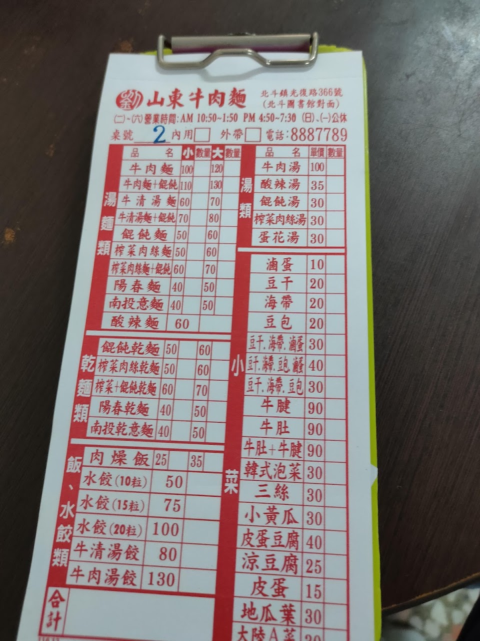 2024最新在地推薦餐廳的菜單_劉山東牛肉麵的菜單、圖片