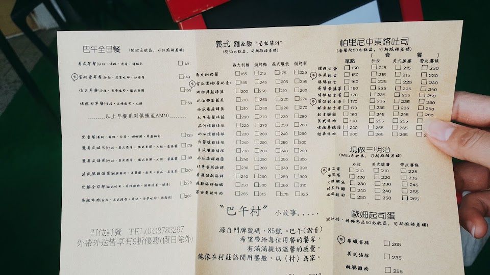2024最新在地推薦餐廳的菜單_巴午村Brunch&Cafe「1號店」的菜單、圖片