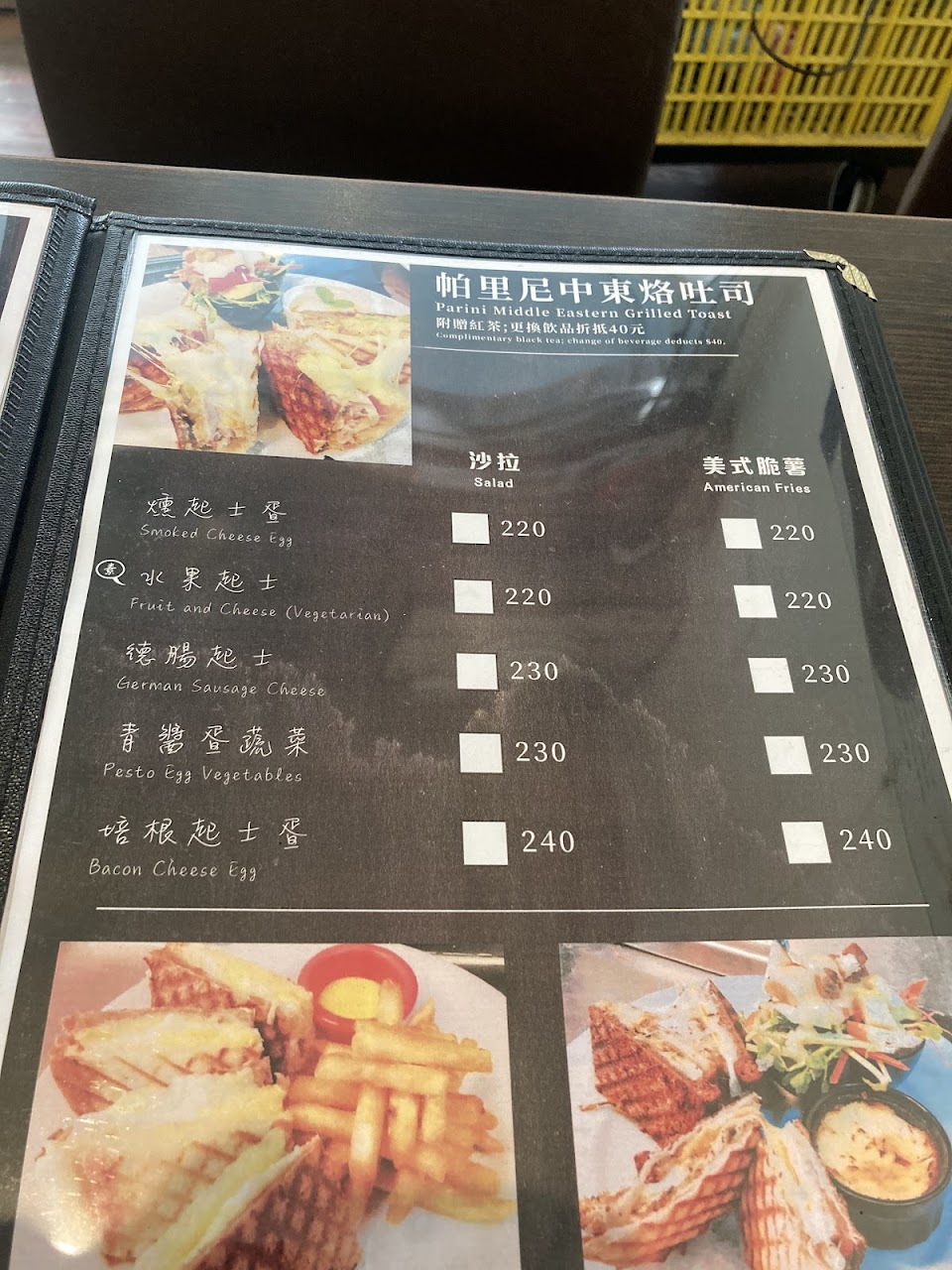 點打開菜單第一頁巴黎全日餐就被告知沒了,只好換成烙吐司餐