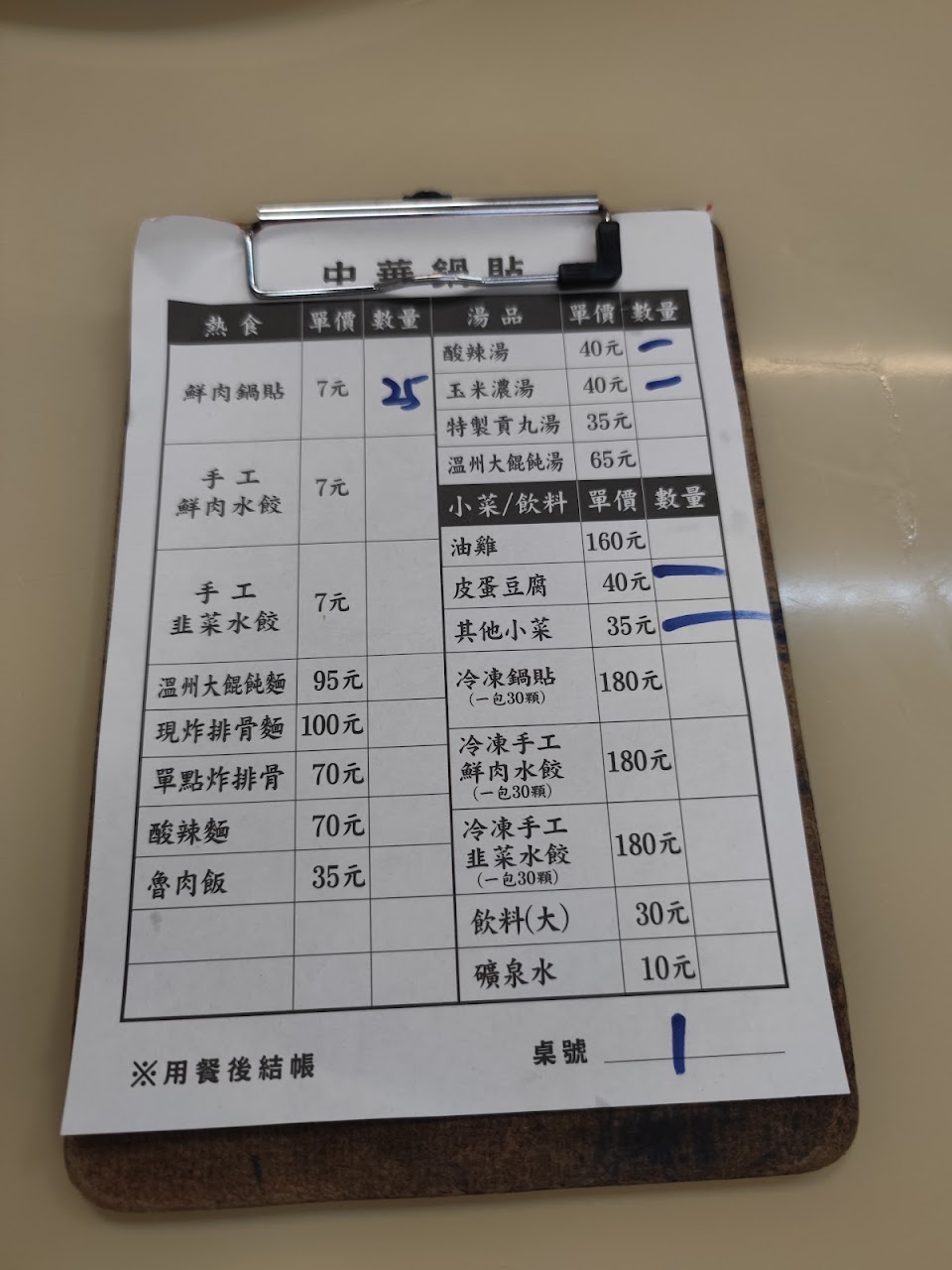 餐點:1