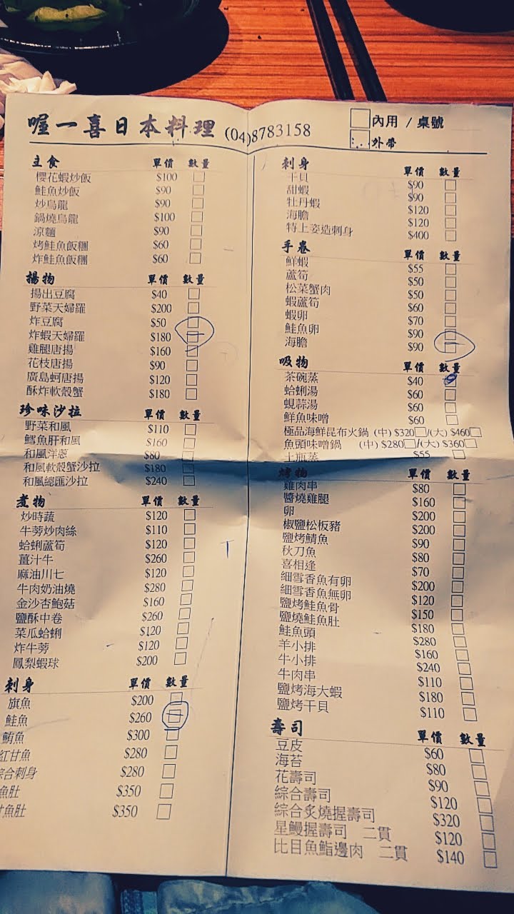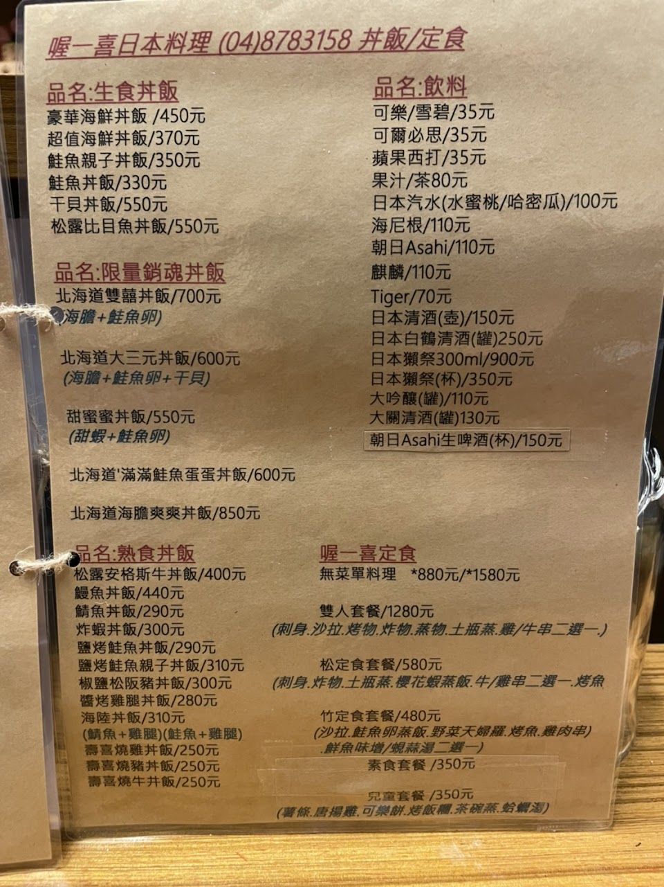 2024最新在地推薦餐廳的菜單_喔一喜日本料理的菜單、圖片