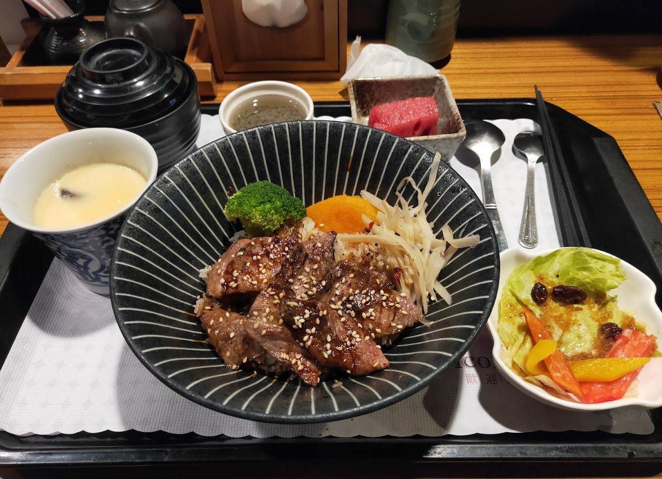 牛肉壽喜燒口味不錯但是肉質有一半有點乾柴,應該是煮得有點過老 生魚片丼的部分算好吃,但是沒有特別驚艷的地方