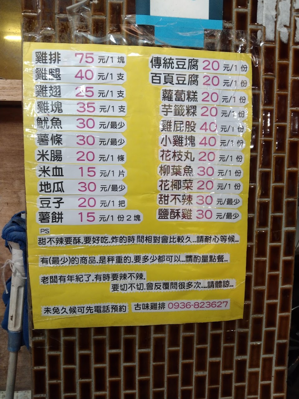 2024最新在地推薦餐廳的菜單_古味雞排的菜單、圖片