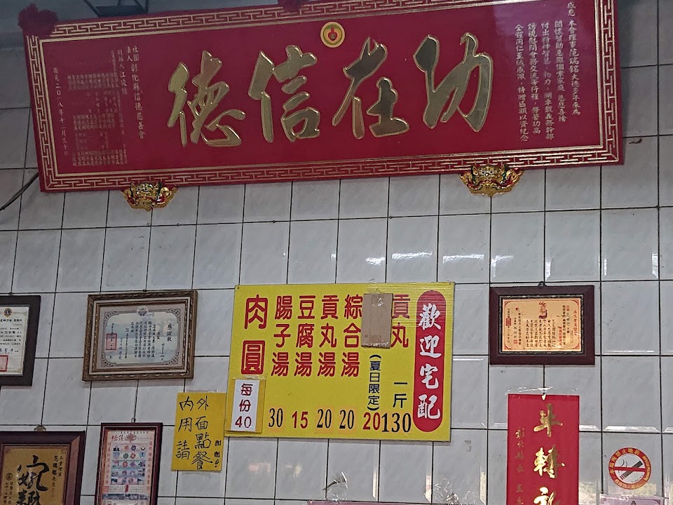 非假日來人沒有很多,肉丸好吃、一份50、綜合湯是一個貢丸一塊粗豆腐(普通)、裡邊是不繡鋼高的長桌、四處看看還算乾淨、有去北斗逛逛會再去吃真的肉丸好吃? …