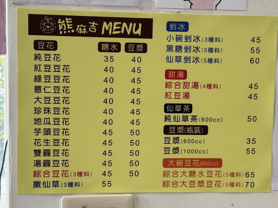 2024最新在地推薦餐廳的菜單_熊麻吉~手作冰品‧豆花-北斗總店的菜單、圖片