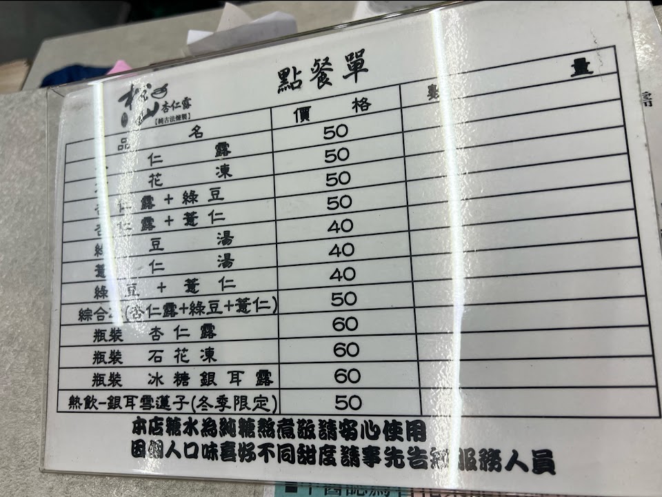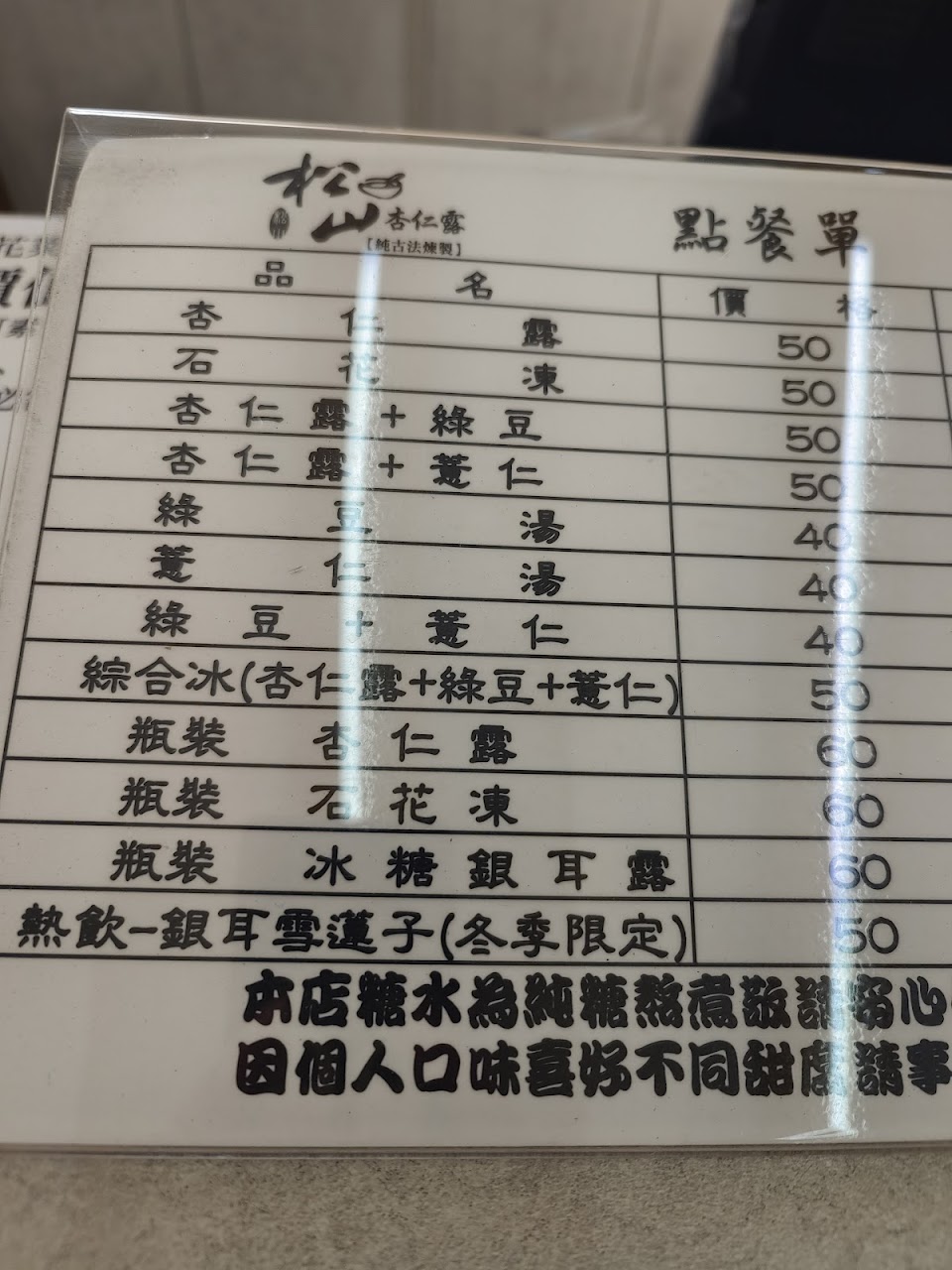 2024最新在地推薦餐廳的菜單_松山杏仁露的菜單、圖片