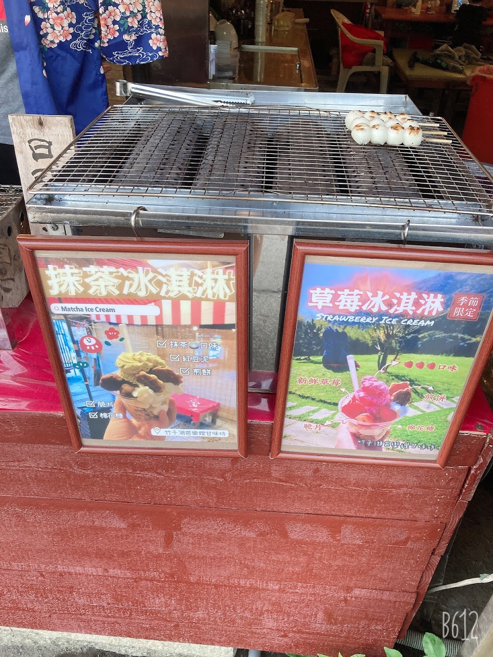 地方的佈景很舒服 日式烤糰子一支40 吃起來像台式烤麻糬裹日本甜醬 上面灑海苔粉和芝麻