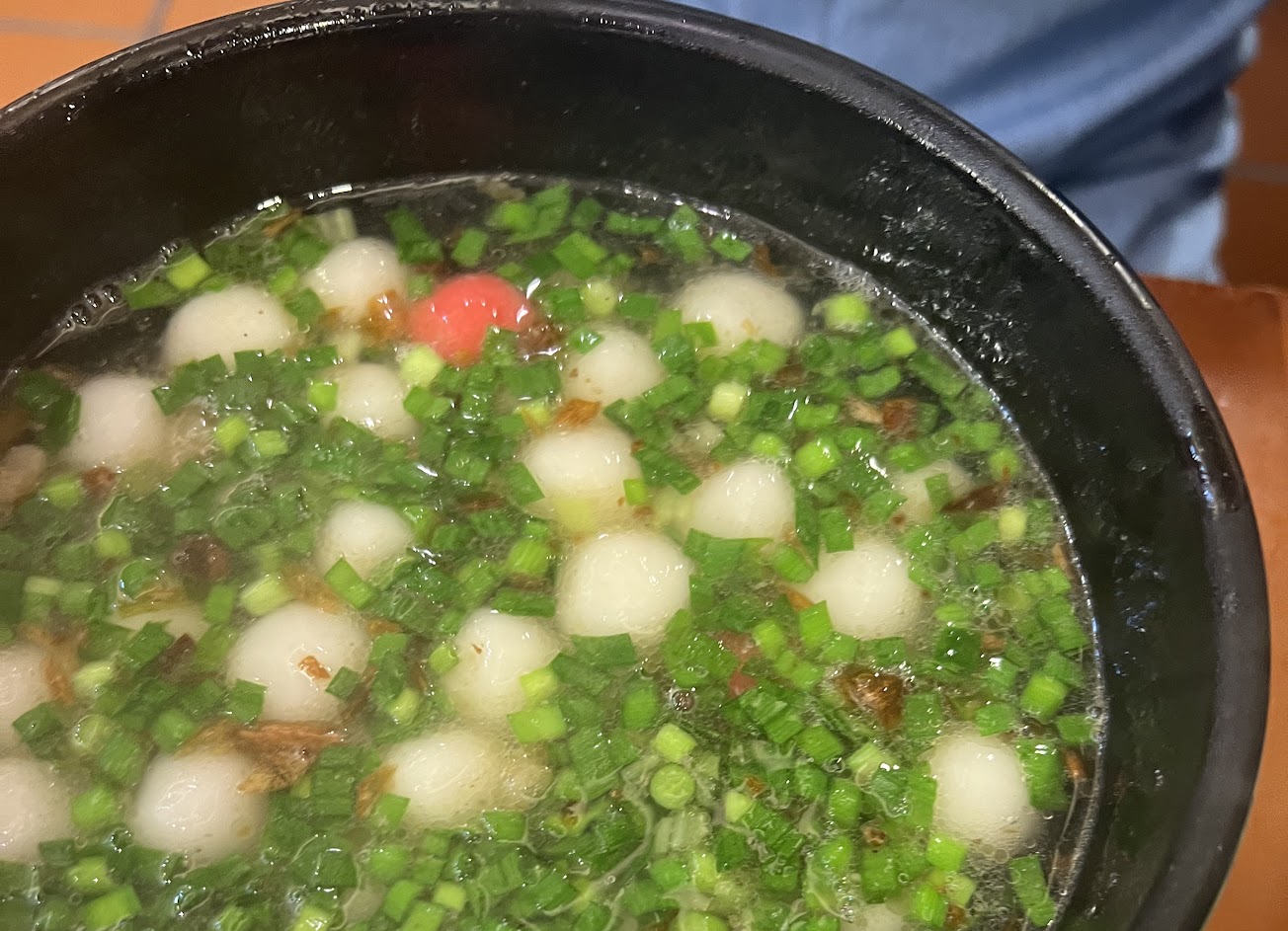 湯頭很香有滿滿的蔥,湯圓也很有嚼勁