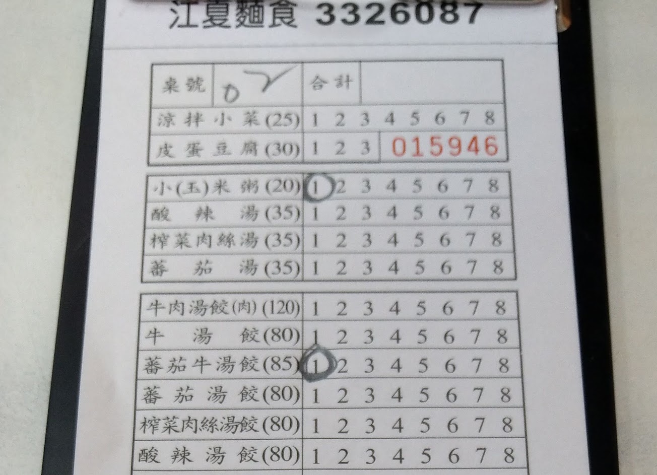 帶著微微蕃茄酸香的半紅燒湯頭,喝來相當舒服也不會過鹹。5塊剖半切片的牛腱肉,除了稍有厚度外,口感也算軟硬適中。細拉麵雖是Q滑但口感就略差,整體量也不算多。令人好奇的是店家和西門町的@江夏御品到底有沒有關聯?