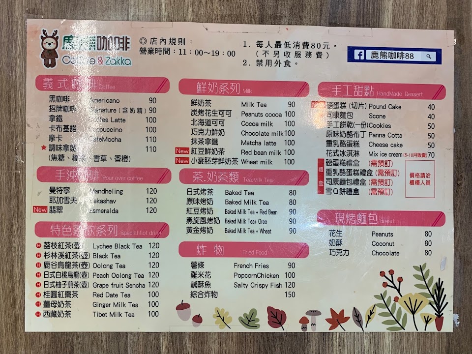 忘記拍照片了,下次有時間過去的時候再補充照片~ 服務 內用 餐點類型 其他 平均每人消費金額 $1-200 建議的餐點 日式烤奶超好喝 下午茶