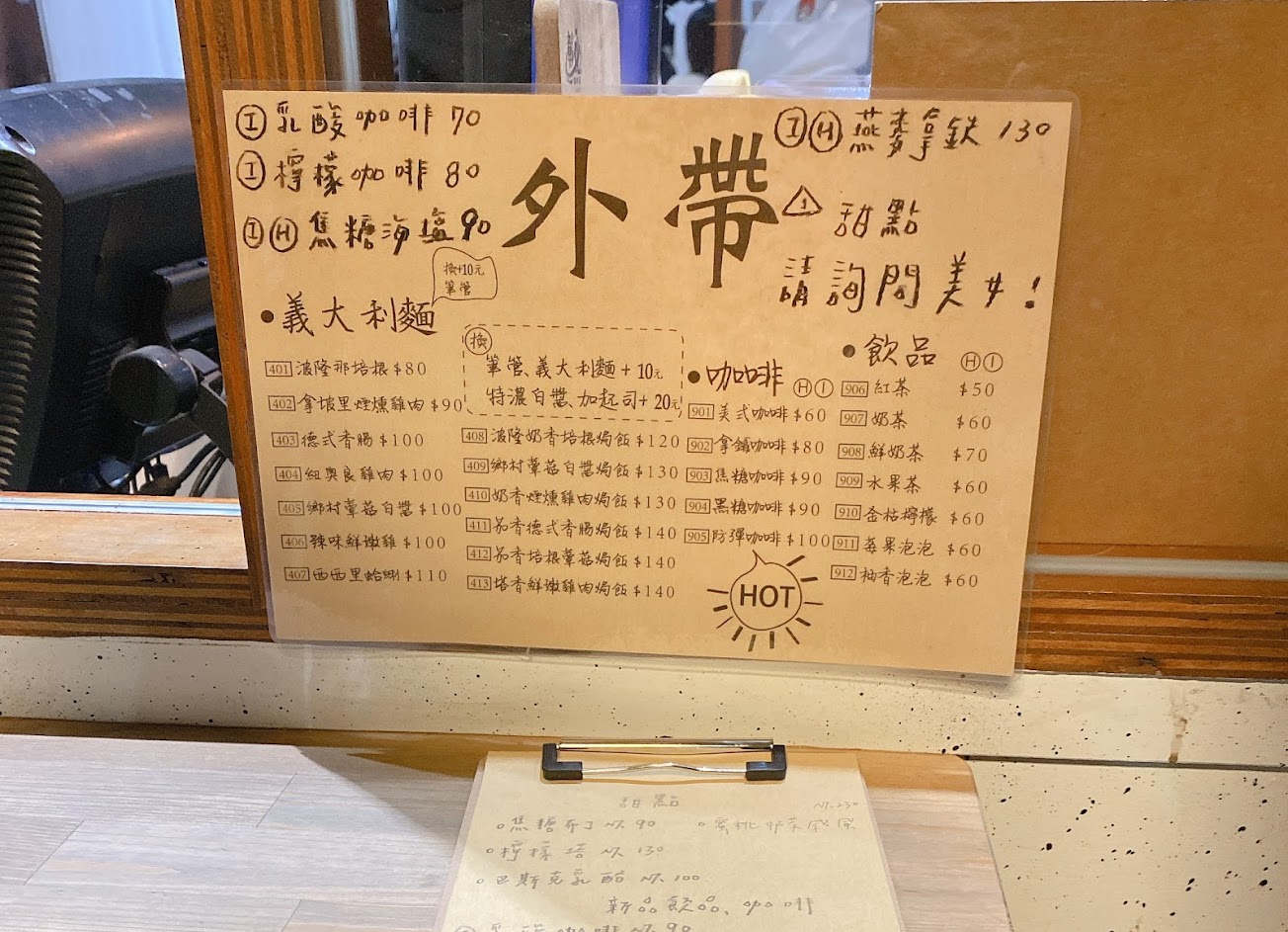 不僅賣義式料理也有飲品及甜點
