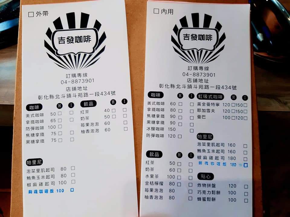 2024最新在地推薦餐廳的菜單_吉發咖啡的菜單、圖片