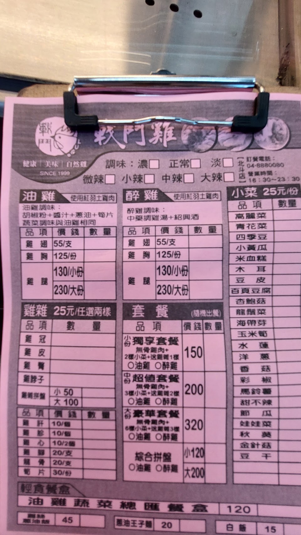 2024最新在地推薦餐廳的菜單_戰 鬥 雞 油雞/醉雞 鮮燙蔬菜 彰化北斗店的菜單、圖片