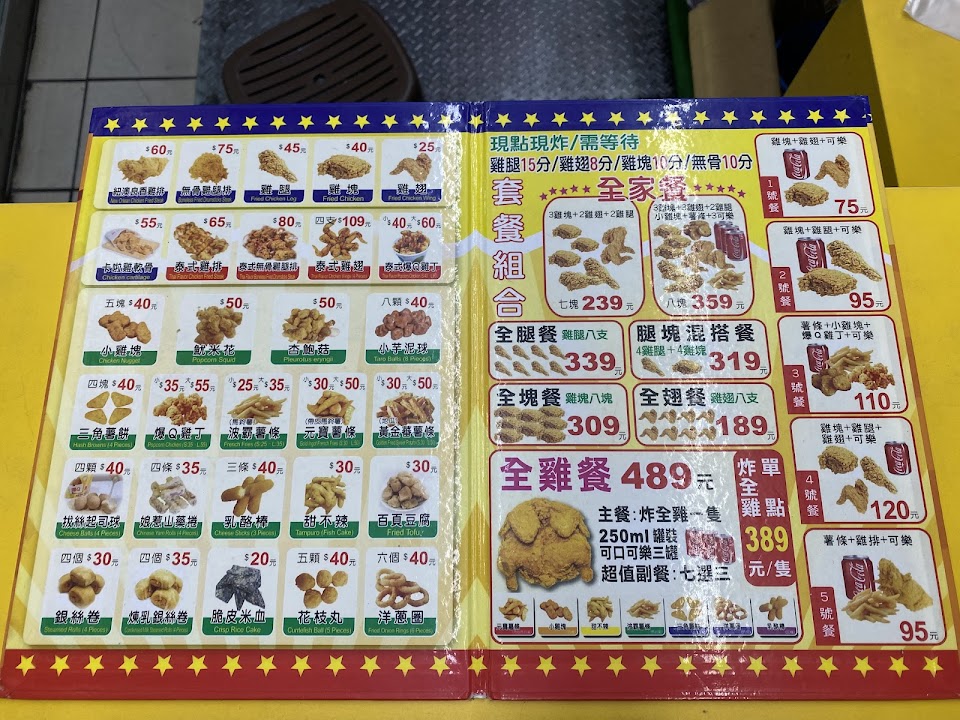 全家雞餐的炸雞比知名大速食店還好吃,吃到骨頭裡都是燙的,有次朋友打電話預訂要去拿,老闆說因為(炸鍋)溫度不夠,再晚10分來拿,朋友去拿時,老闆告知多送一隻雞腿,我們都覺得這個老闆的服務很好沒得挑剔,因為很多人自己做老闆,有時遇到客訴卻不願意做更好的配套措施,可是這位老闆不是因為客訴是因為讓客人多跑一趟而免費送您一隻雞腿做補償,雖然雞腿不是最貴但卻是最好吃的,就算生意好,老闆也不會要趕著炸完雞草率給客人了事!