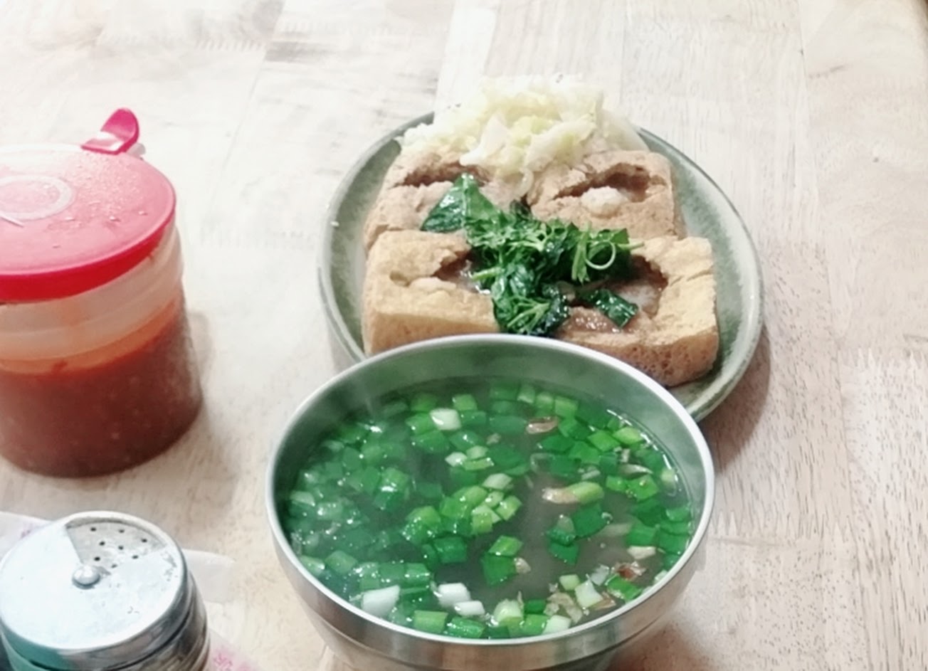 北斗在地人私藏的美食,老闆先將生豆腐放入左邊油鍋炸,待豆腐快熟時移到右邊高溫油鍋搶酥去油,九層塔跟醬汁真是絕配、先將九層塔分別放在豆腐上、夾起豆腐要小心因醬汁都被包在豆腐裡,咬一口外酥內嫩真好吃,注意⚠️桌上辣椒醬有辣喔! 服務 內用 餐點類型 其他 平均每人消費金額 $1-200 建議的餐點 臭豆腐跟豬血湯