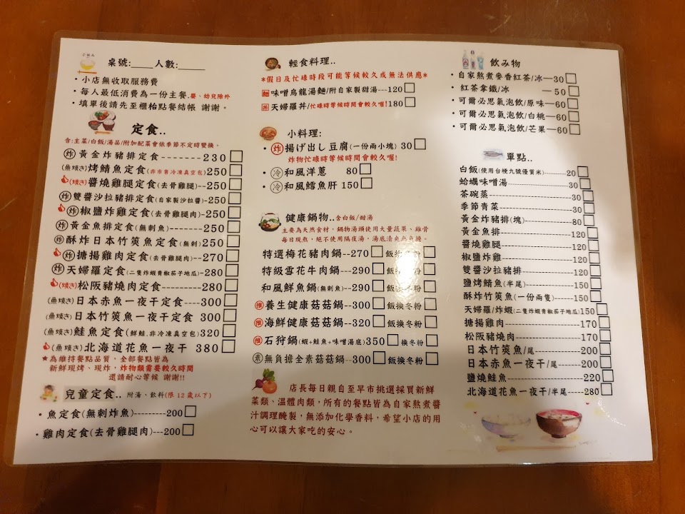 從小孩剛出生吃到小孩高中,料理有一定水準,烤魚必吃。現點現做,如果要求速度或是趕時間。需三思。外帶餐盒精緻。本人最愛味增湯,無敵。
