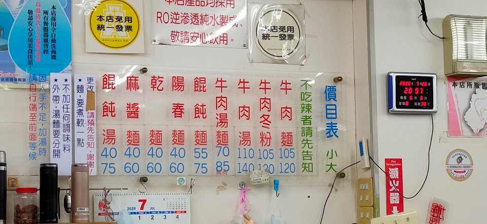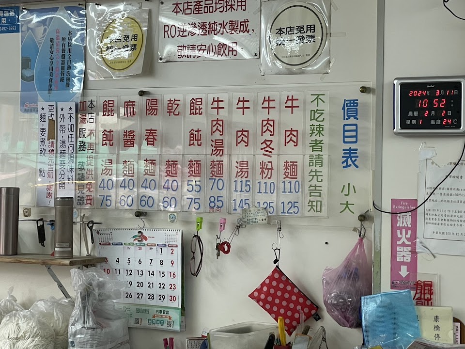 點了大碗牛肉麵,麵吃起來不是很熟有點生生的,牛肉湯沒很油,跟我小時候吃的味道真的差很多,價錢變貴了,之前吃乾麵加餛飩湯,餛飩湯和乾麵很鹹,吃完口渴,小菜涼拌豆皮很油,魯蛋也沒這麼好吃