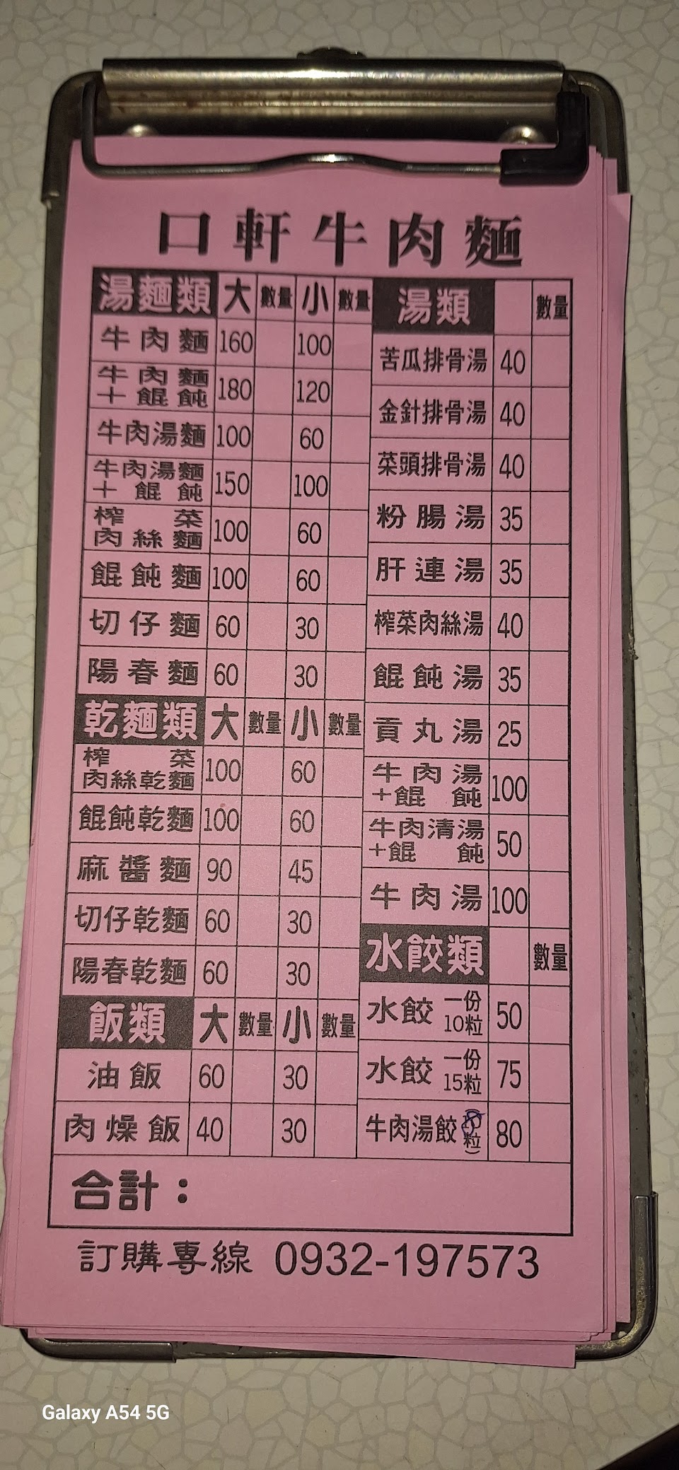 2024最新在地推薦餐廳的菜單_口軒牛肉麵的菜單、圖片