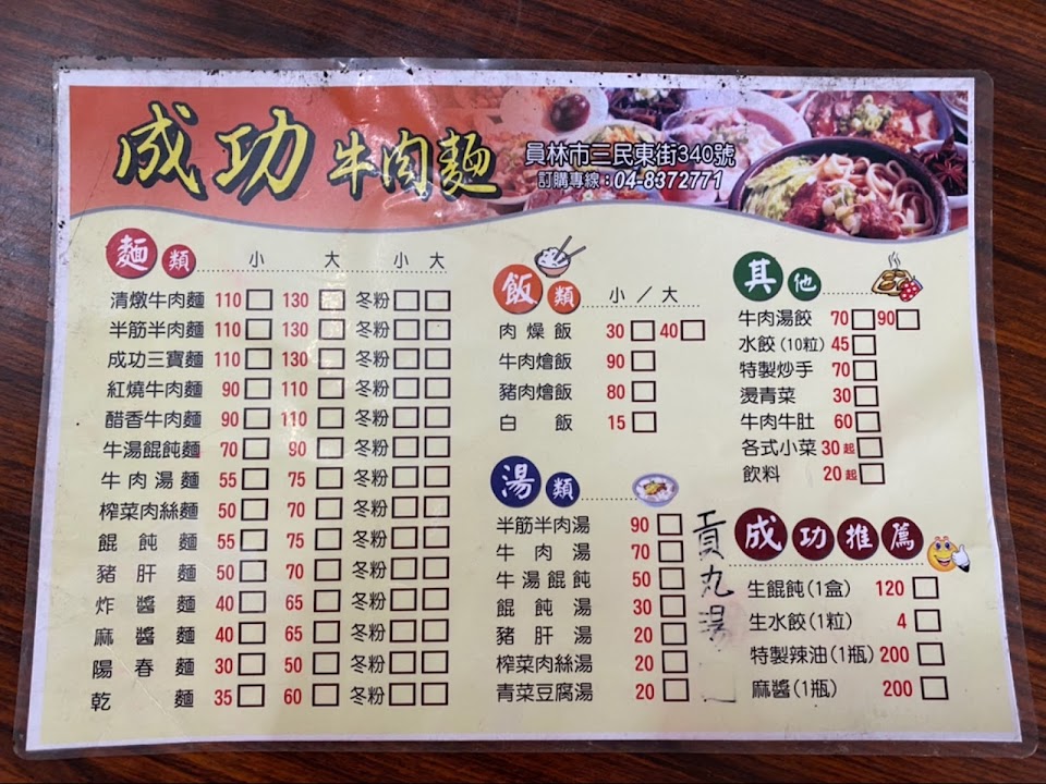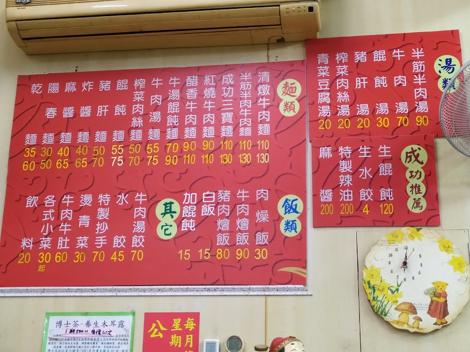 2024最新在地推薦餐廳的菜單_成功牛肉麵的菜單、圖片