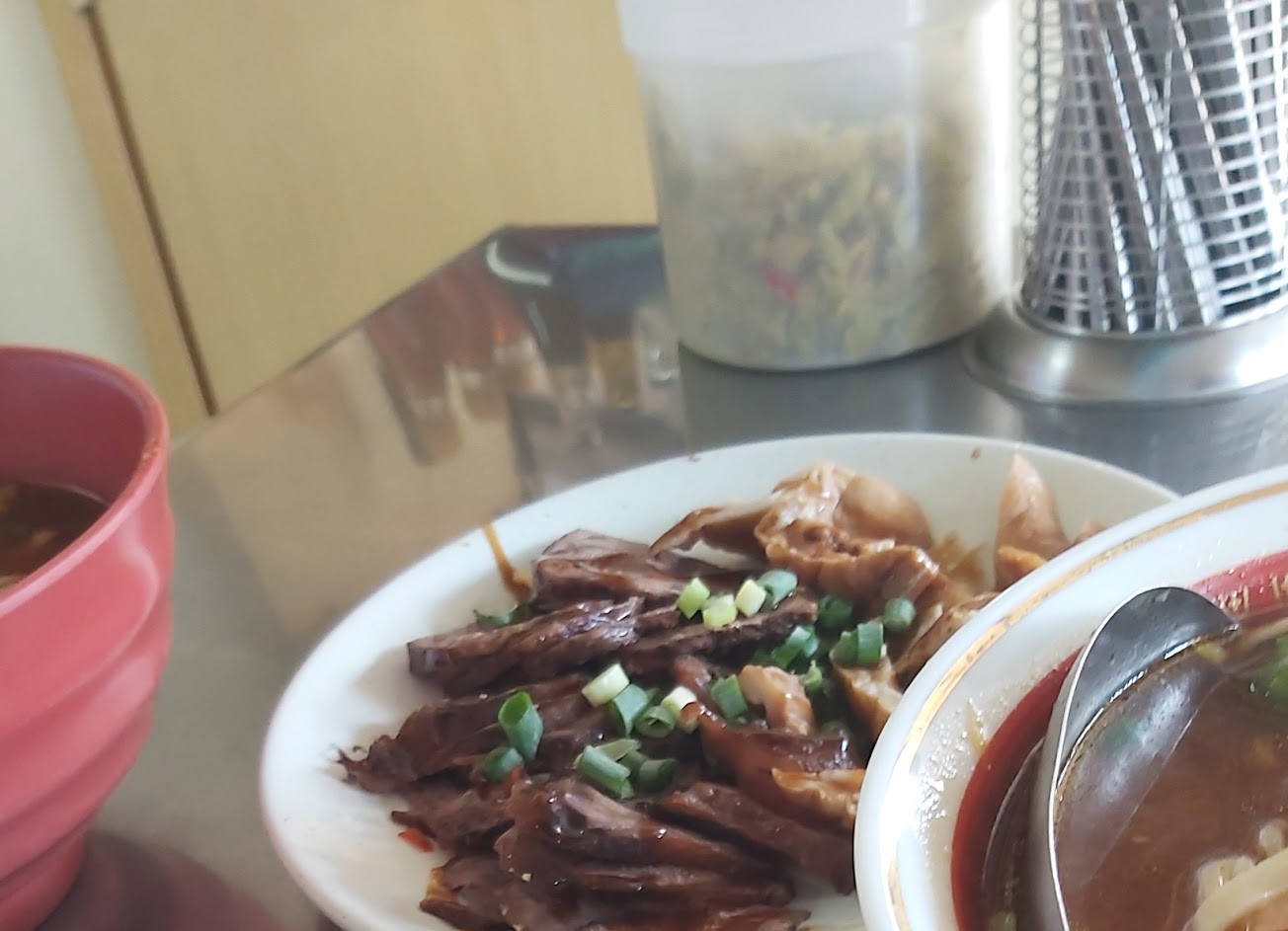 員林牛肉麵老店之一,和另一家位於華成市場老店一樣,是在地人從小吃到大的老店。小碗牛肉麵漲到破百,但店家依然誠意十足,給料給湯實在,讓人吃了覺得滿足。 紅燒豆瓣湯頭,適合喜歡重口味的,想喝濃郁牛肉湯一定要試看看。(但是最近這次吃完會覺得口渴,以前沒這樣。) 麵條Q彈能吃到湯汁,有煮透,不會像有些店的粗麵條咬下去裡面沒熟。 牛肉入味軟嫩卻不乾柴,有些還帶點筋肉,口感十足。 小菜滷味也很強,偏重口味,適合打包回家配啤酒,一定要試試看。 惟內用環境不是很好,介意的人可以外帶。
