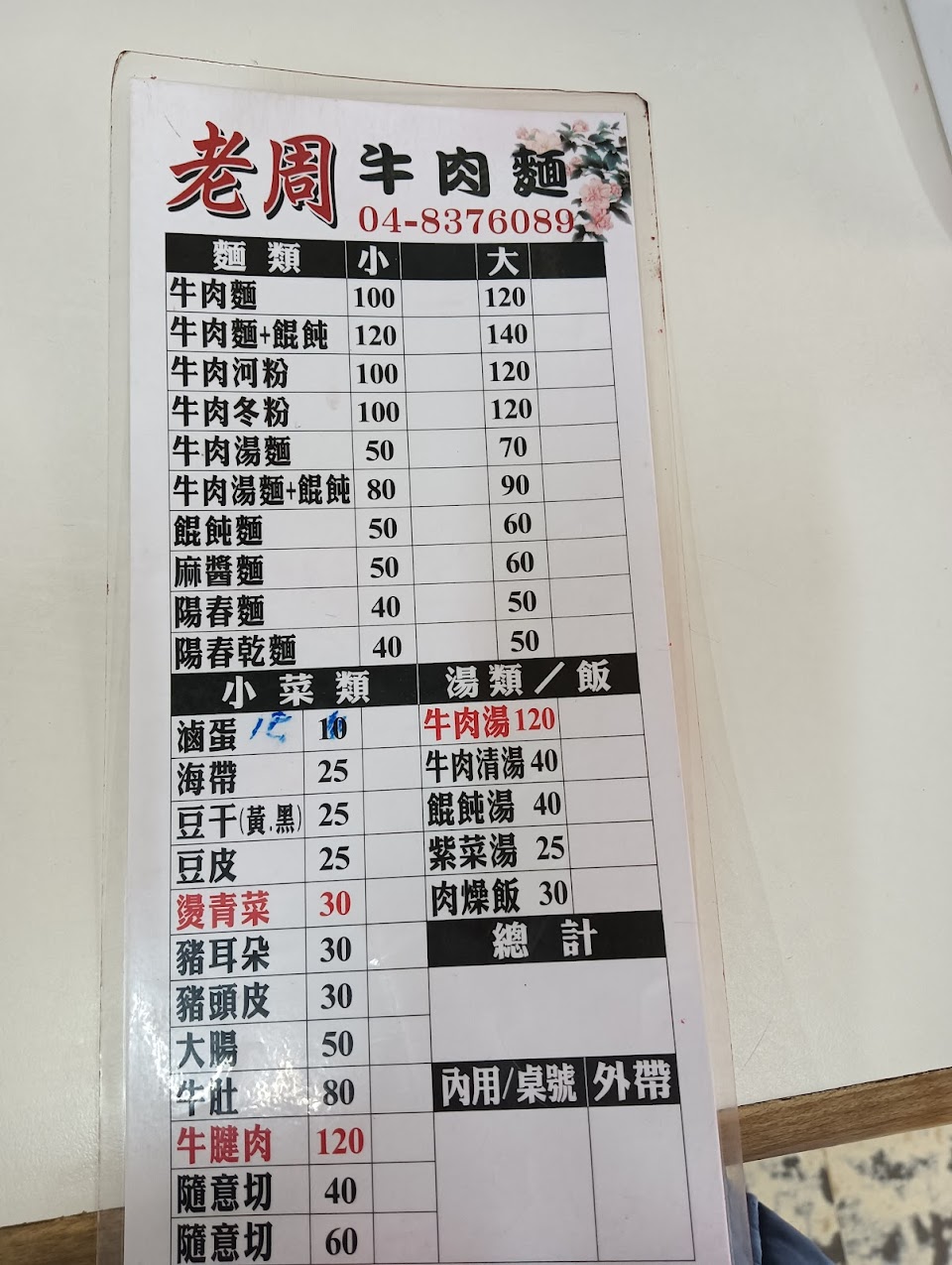 牛肉湯不油 喝起來順口 味道蠻剛好 麵條不錯吃 餛飩數量不少(店家自製非現成品) 牛肉滷的很透 算不太會塞牙縫 牙口不好也沒問題 敢吃辣的可以加一點特製辣椒 第一次前往建議點小碗就好 份量很足夠 小菜量多 小心不要點太多 內用有冷氣很棒 附近有路邊停車格要看運氣 再往前有公立的小停車場可停但要稍微步行一個路口 有機會會再前往 推薦!
