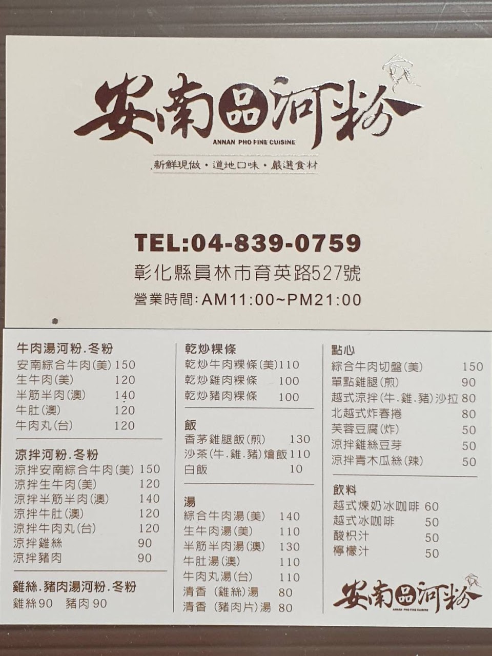 2024最新在地推薦餐廳的菜單_安南品河粉-員林旗艦店的菜單、圖片
