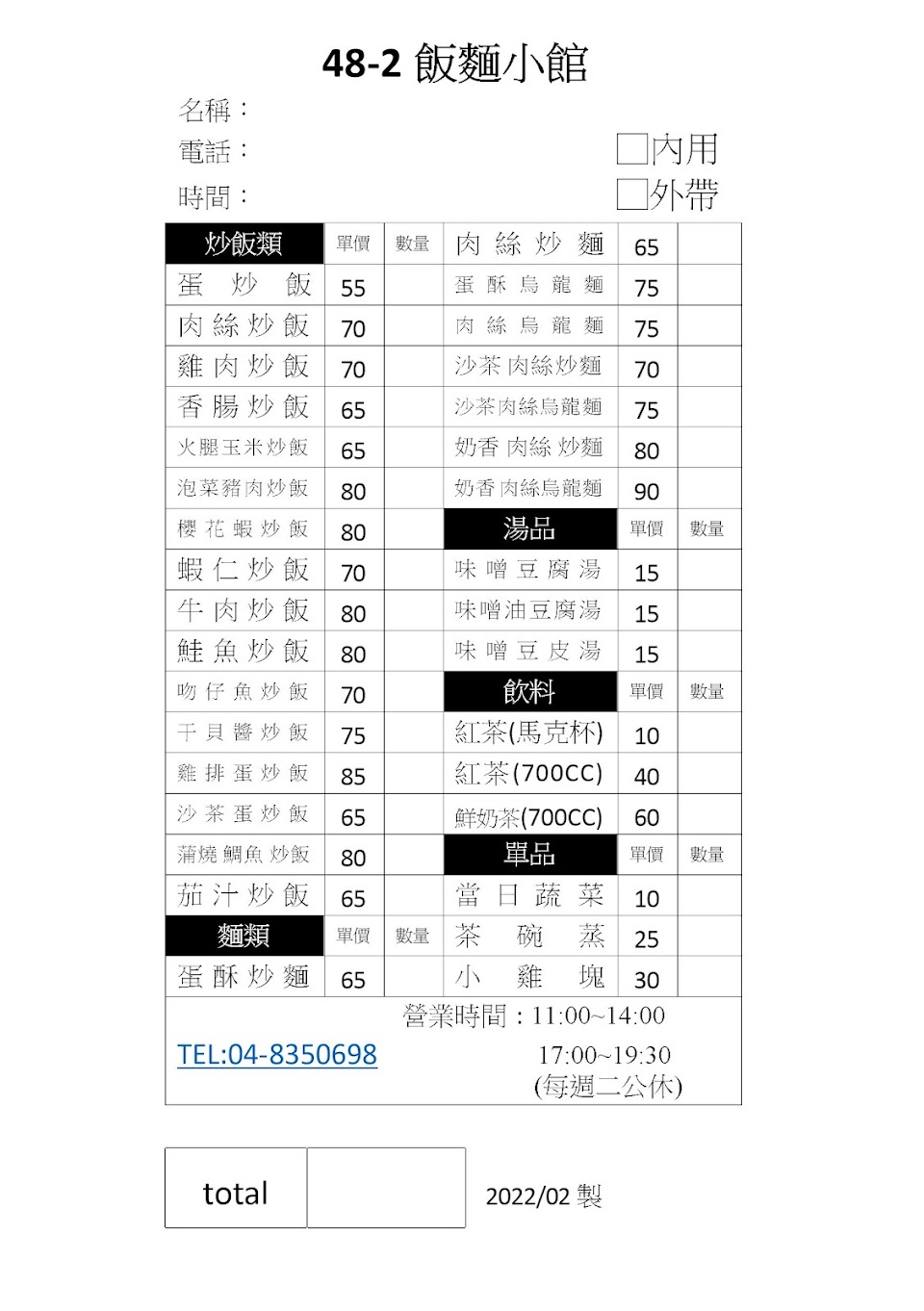 2024最新在地推薦餐廳的菜單_48-2飯麵小館的菜單、圖片