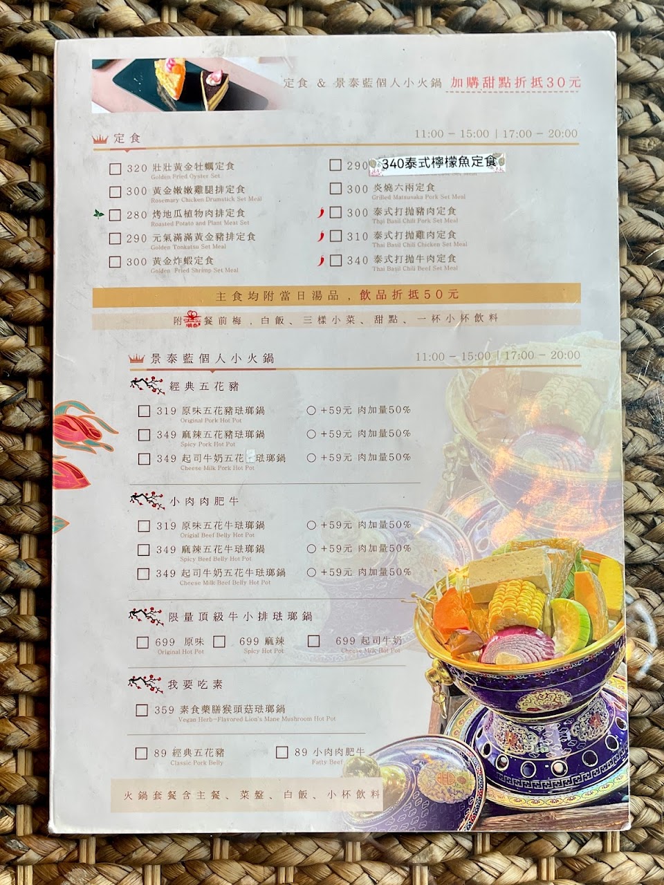 (都有附贈無糖綠茶、紫米紅豆湯、定食的部分有附小湯)