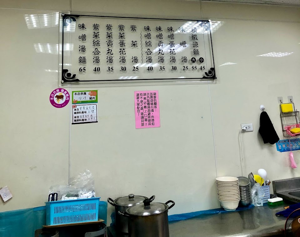 涼麵醬料偏甜,蒜末給很大一勺 相對吃的時候有一點不舒服 後來再點一碗紫菜綜合湯,讓胃舒服一點 湯有點偏鹹,貢丸不錯