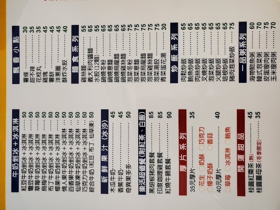 平價餐飲,炒飯、郭燒麵類、冰品