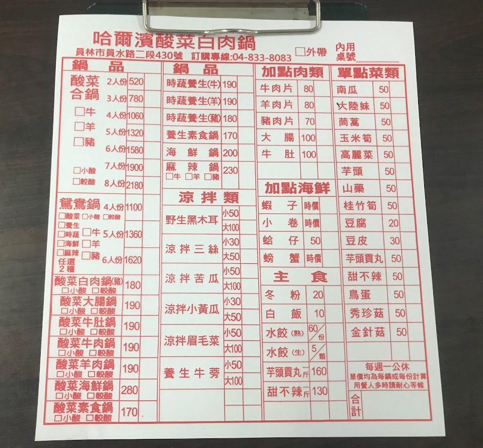 2024最新在地推薦餐廳的菜單_菘築酸菜白肉鍋(原哈爾濱)的菜單、圖片