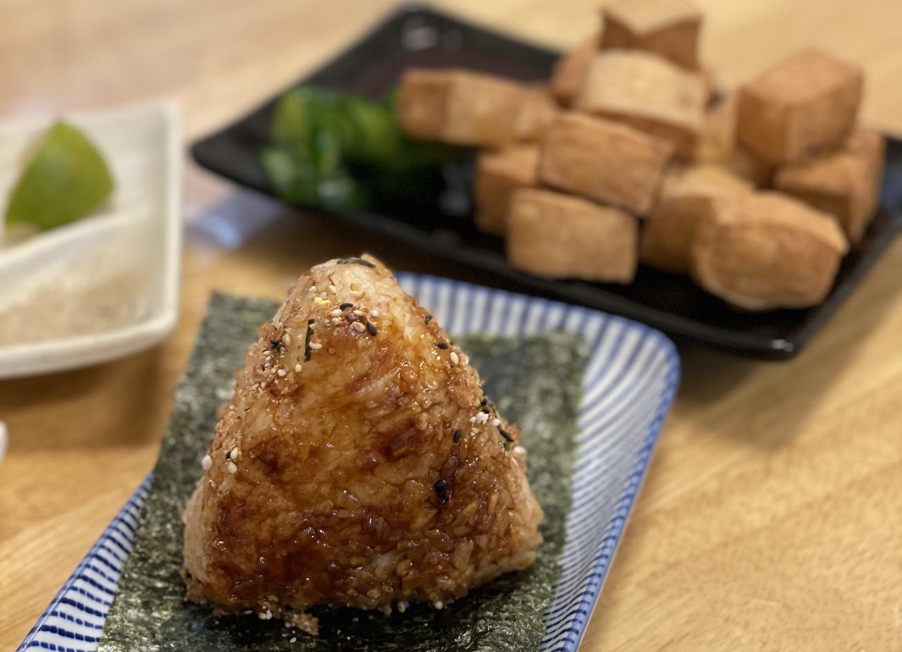 烤飯糰(鮭魚)很像白飯加三島香鬆然後捏成三角形