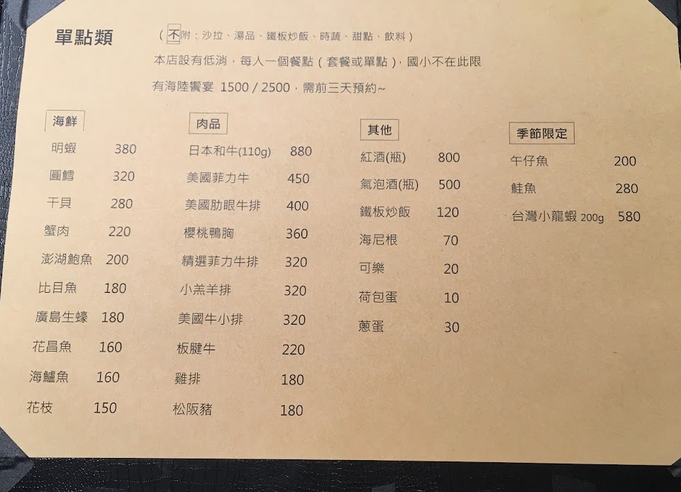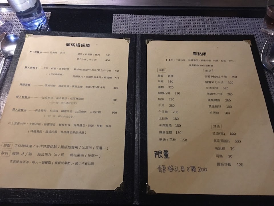 2024最新在地推薦餐廳的菜單_龍居鐵板燒(可接受預約)端午連假正常營業的菜單、圖片