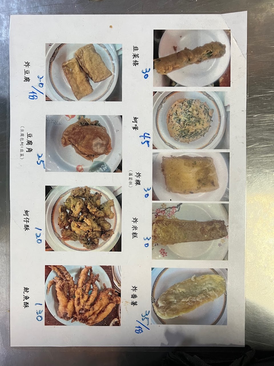 市場內的小店,座位不多,但很用心提供了強力風扇。共點了蚵嗲、地瓜、炸粿、蚵酥共四樣,蚵嗲外皮很酥、內餡的蚵與韭菜都蠻新鮮的。地瓜外酥內綿,有很甜,很棒!炸粿雖然吃得到菜頭味,但整體口感還好。蚵酥是四樣裡面最好吃的,不僅外皮酥脆,內裡的蚵更是鮮甜,讓人驚艷,大推!