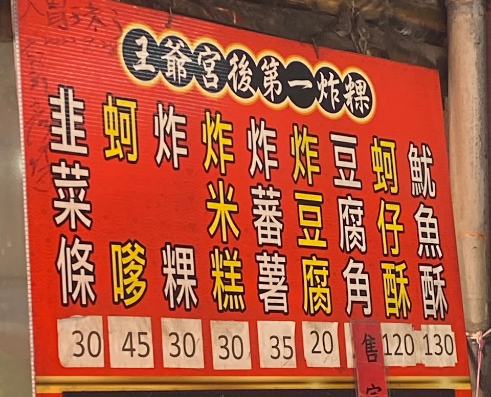 2024最新在地推薦餐廳的菜單_第一市場王爺宮後炸粿、蚵嗲的菜單、圖片