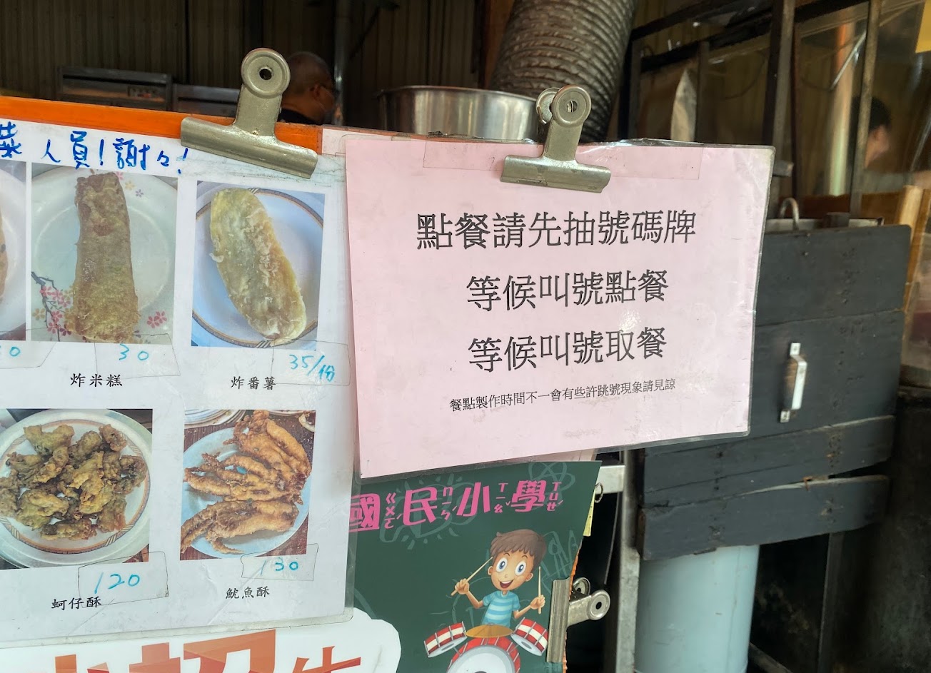 要先抽號碼牌,等待店員點叫號點餐,點了韭菜捲、炸粿、蚵嗲、炸米糕、炸魷魚,魷魚應該是發泡魷魚,整體來說都好吃,態度也很好,外帶會用餐盤裝方便吃,推~
