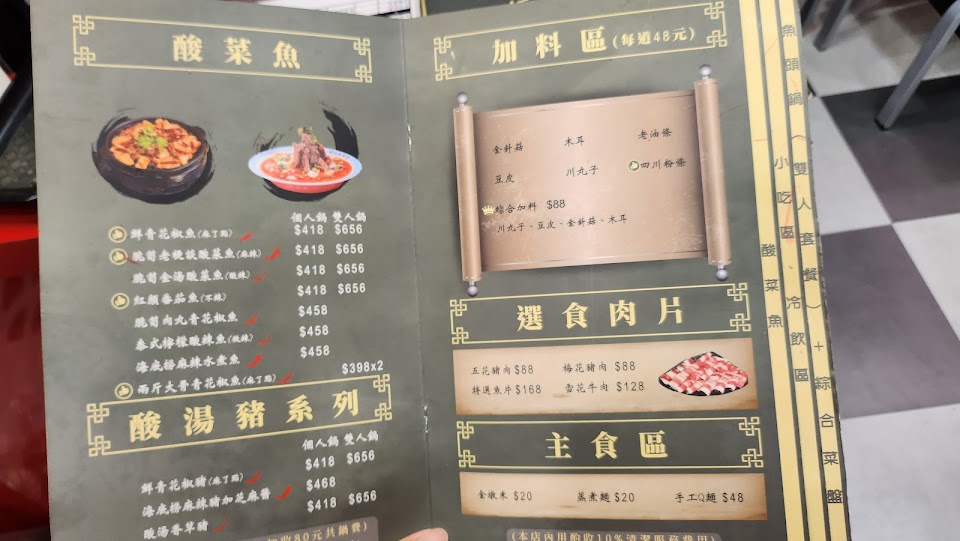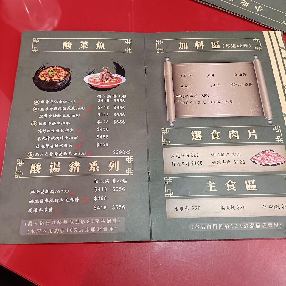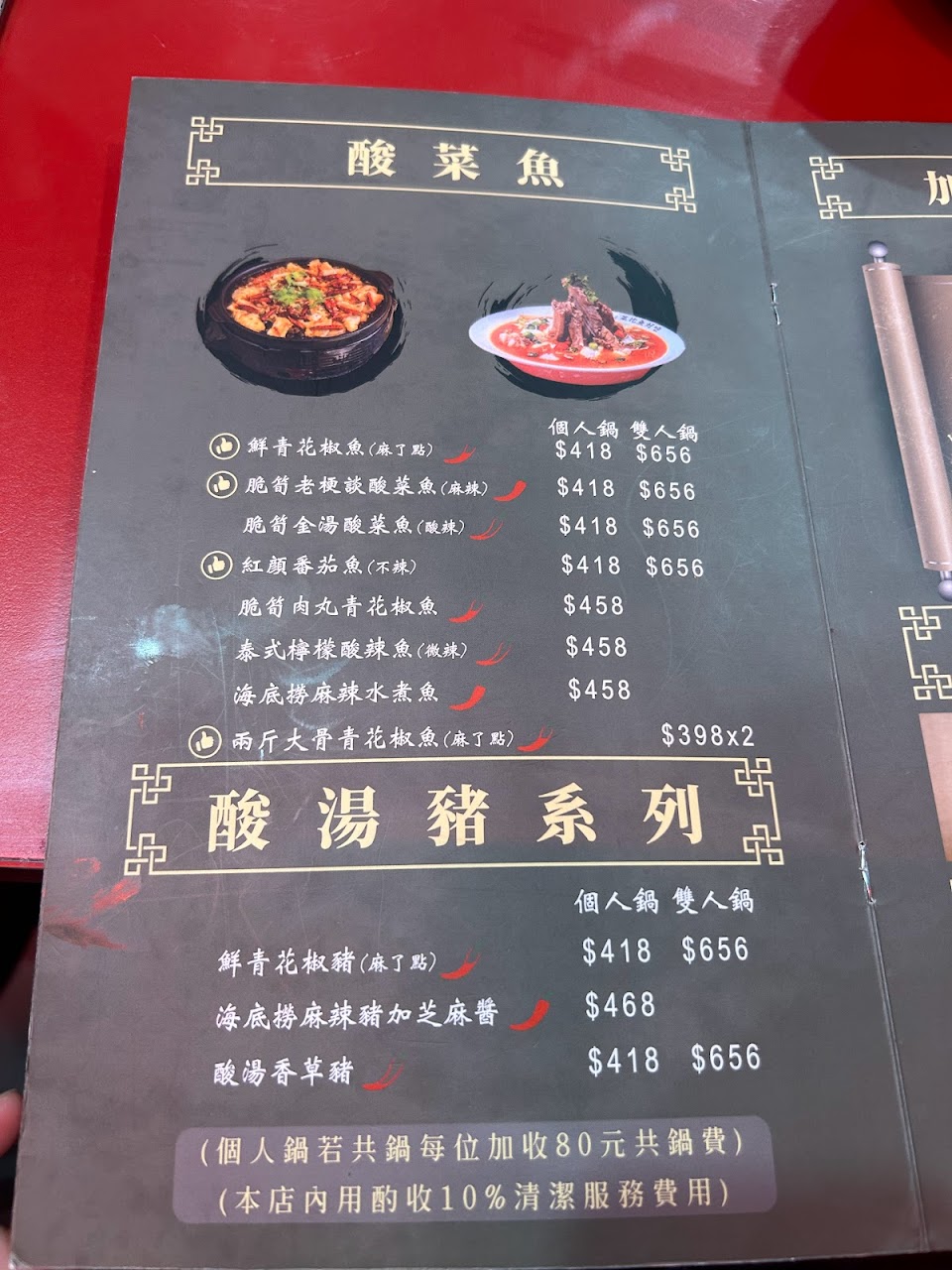 我們點餐的經驗,三個人老闆娘建議點兩鍋有點太多,建議先點一鍋,吃完要加點再加點~ 服務 內用 餐點類型 晚餐 平均每人消費金額 $600-800 餐點:5 服務:5 氣氛:4 建議的餐點 脆筍老梗談酸菜魚